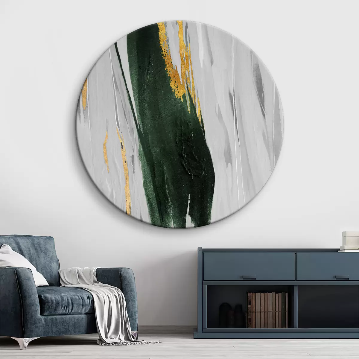 Quadri rotondi Macchie di vernice gialla, bianca e verde r03993