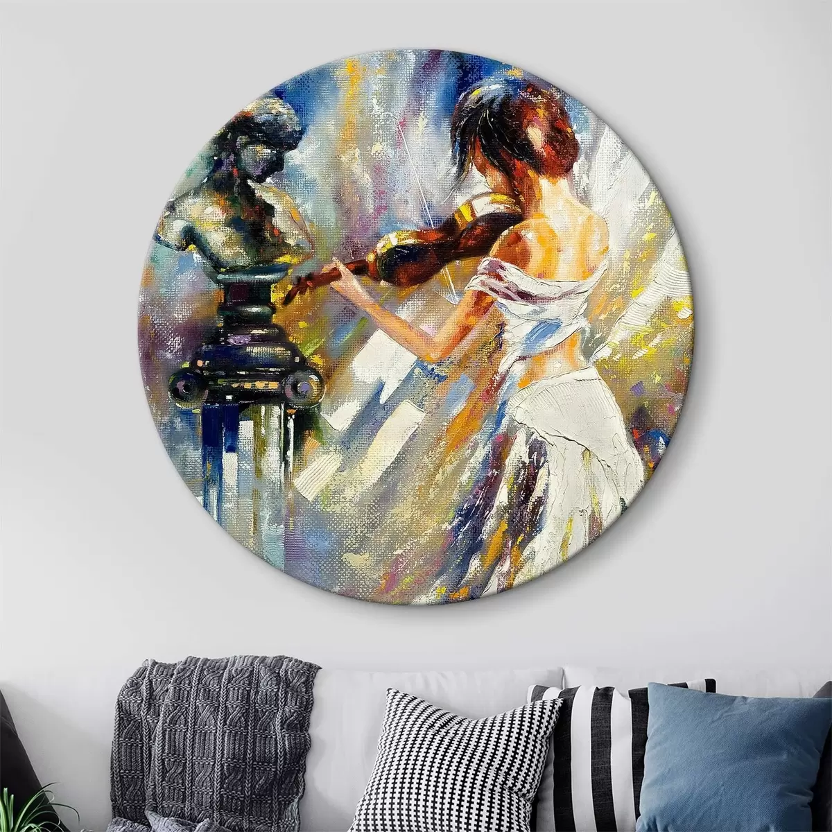 Quadri rotondi Violinista, pittura a olio r04222