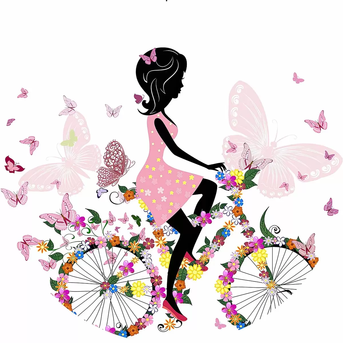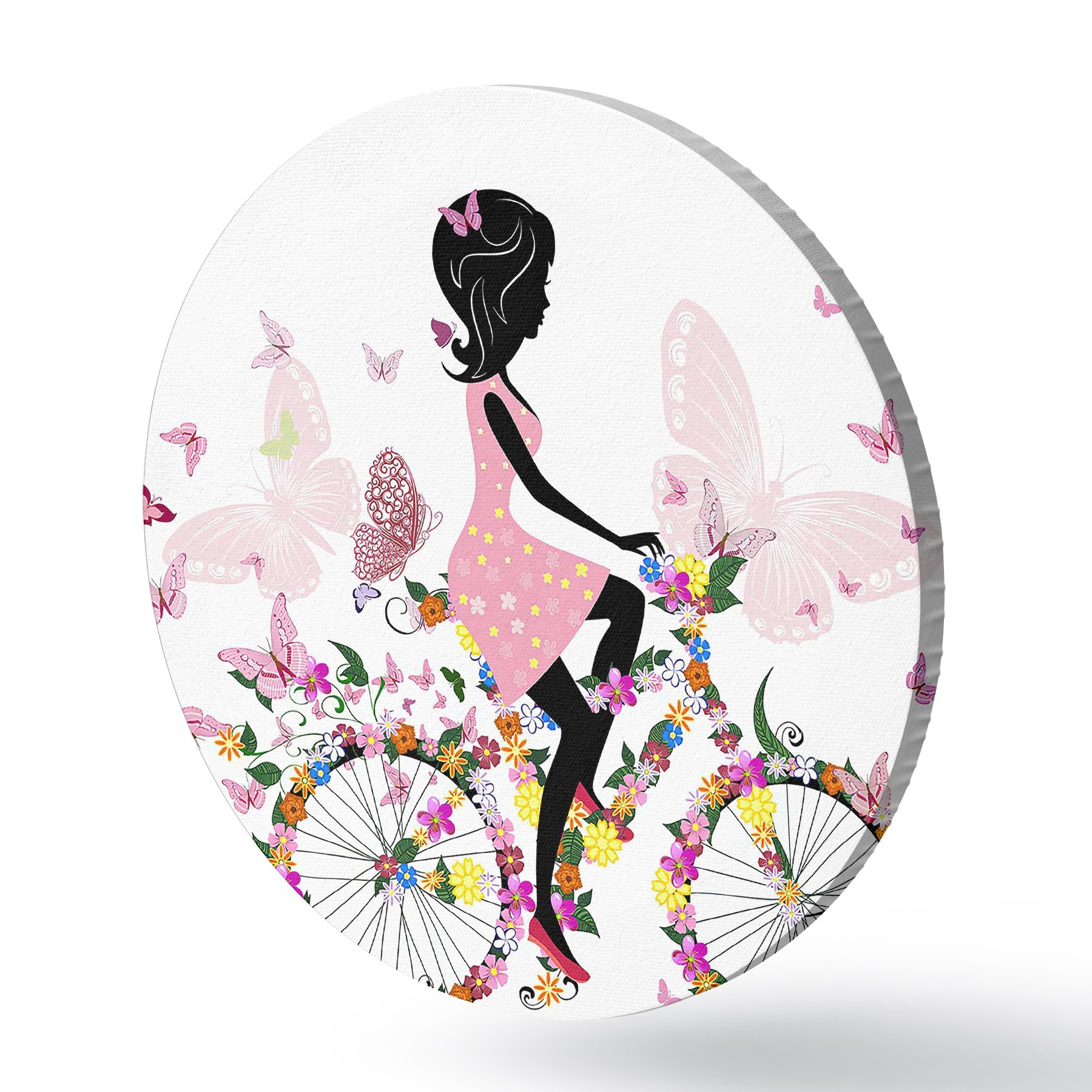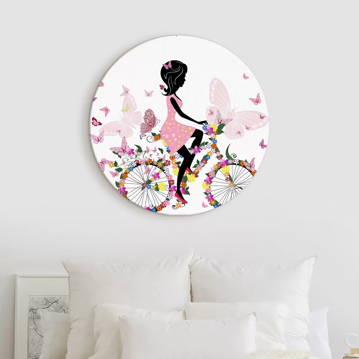 Quadri rotondi Bicicletta, persone nella natura e fiori r08603