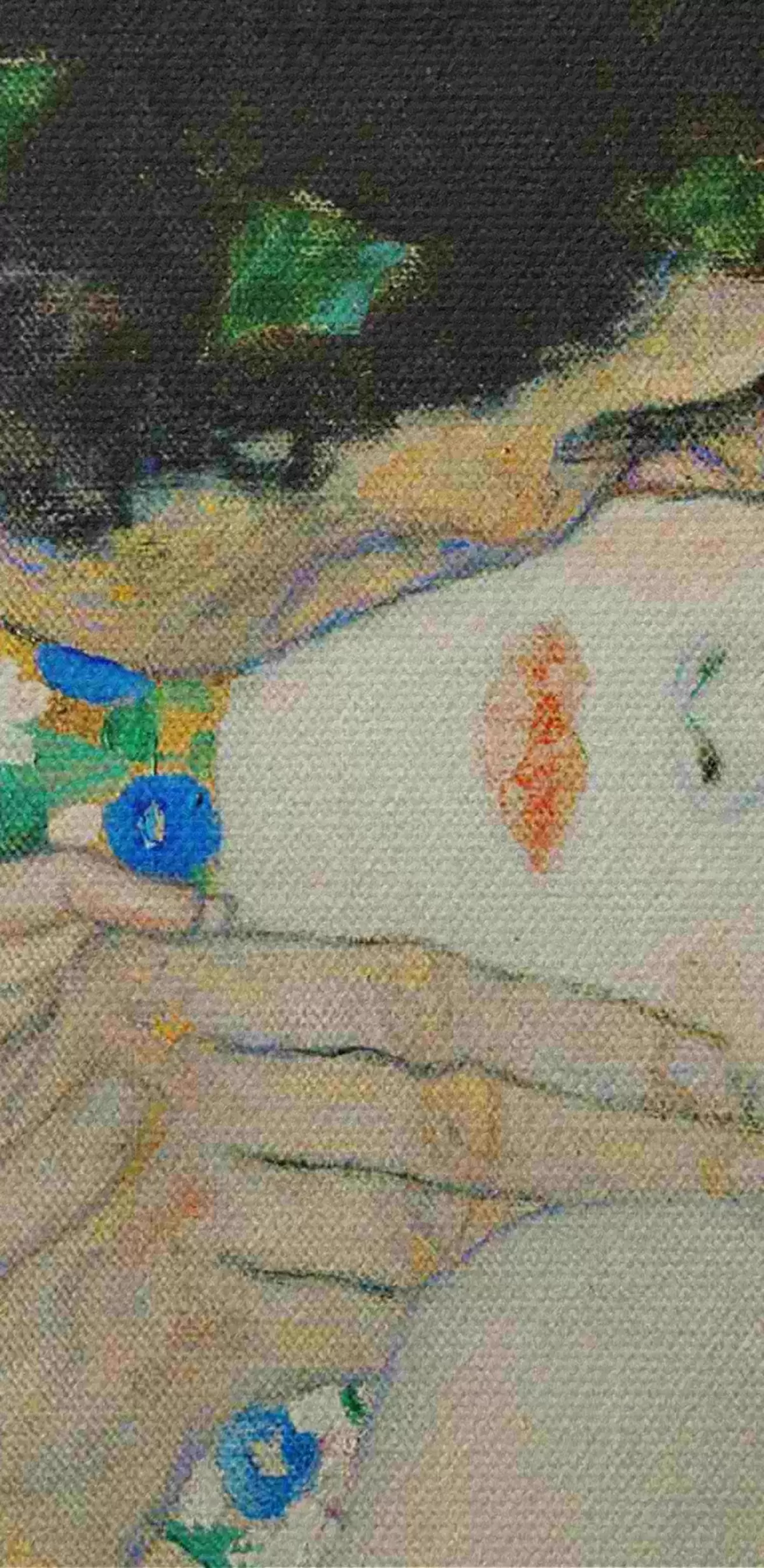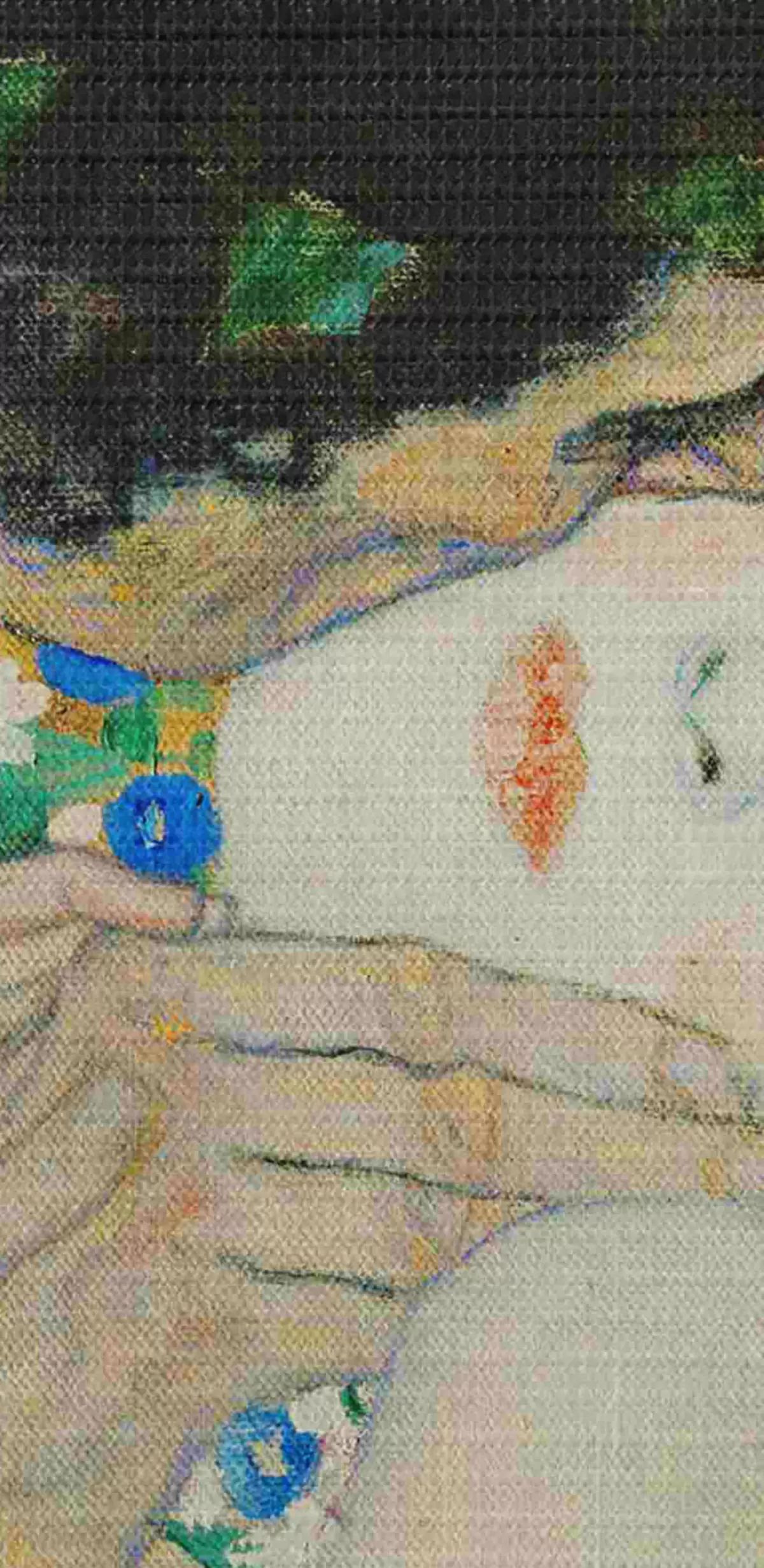 La fine trama dei fili di questa tela ricorda la superficie delle tele degli artisti professionisti.