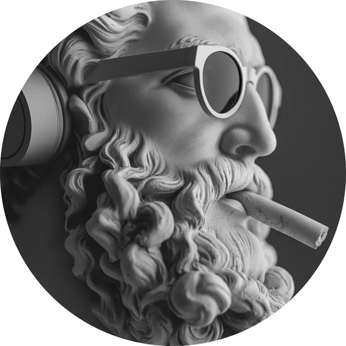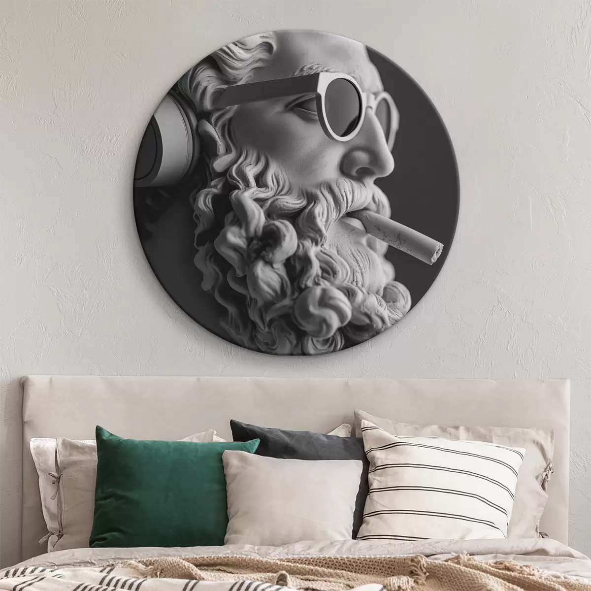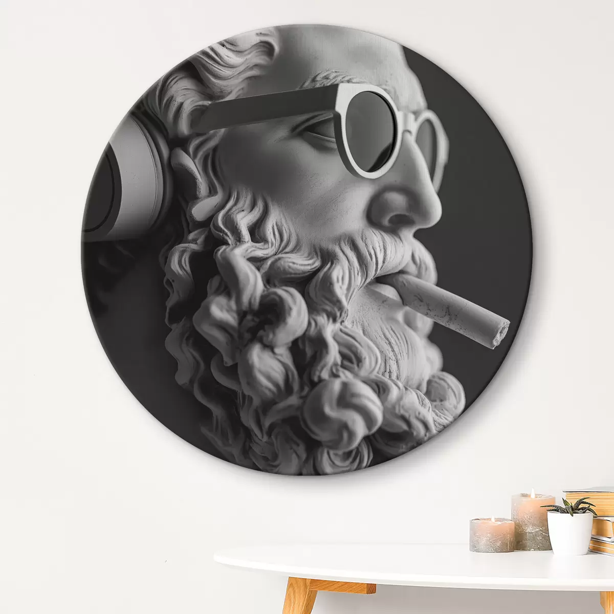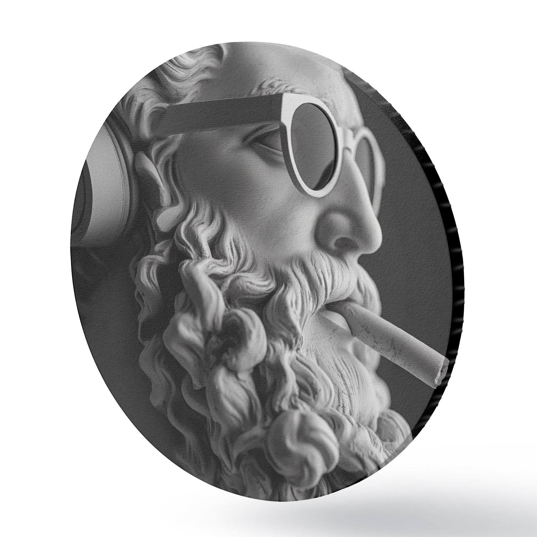 Quadri rotondi scultura greca antica in bianco e nero di zeus in stile moderno r26122
