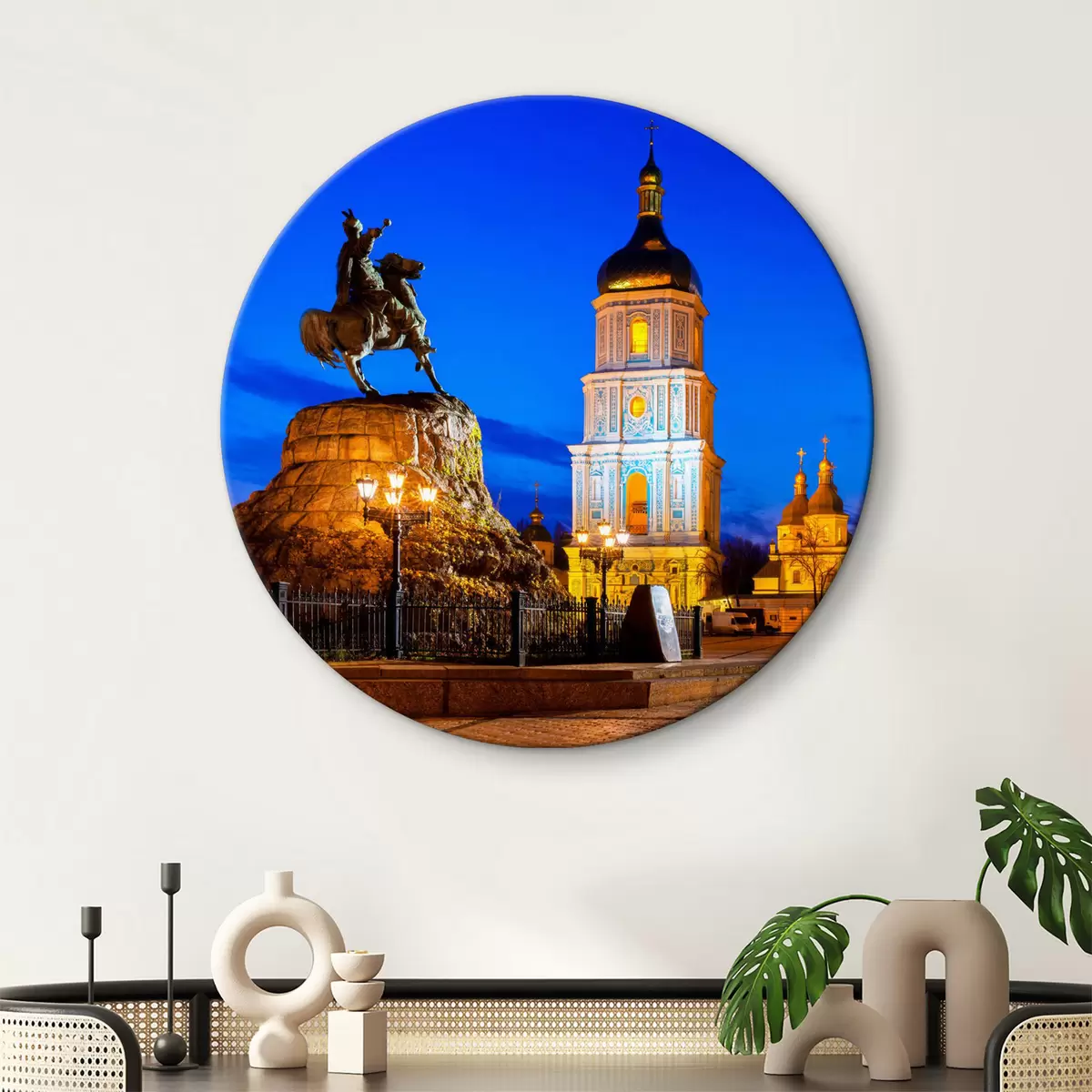 Quadri rotondi Cielo, cavallo ed edificio r32020