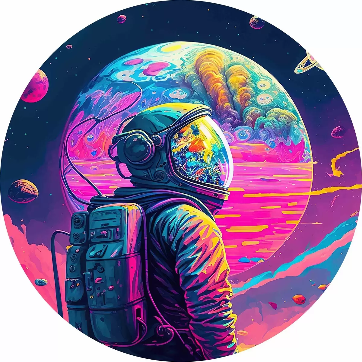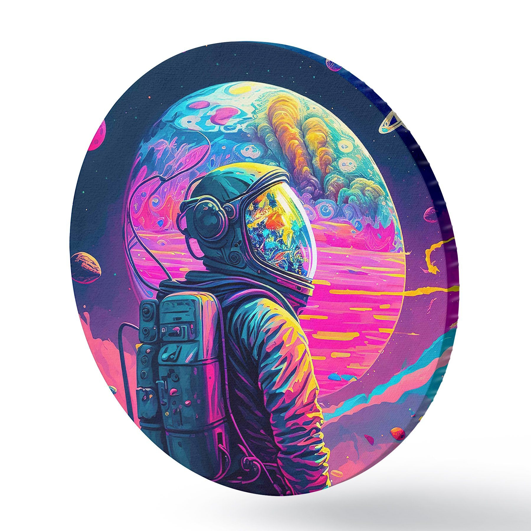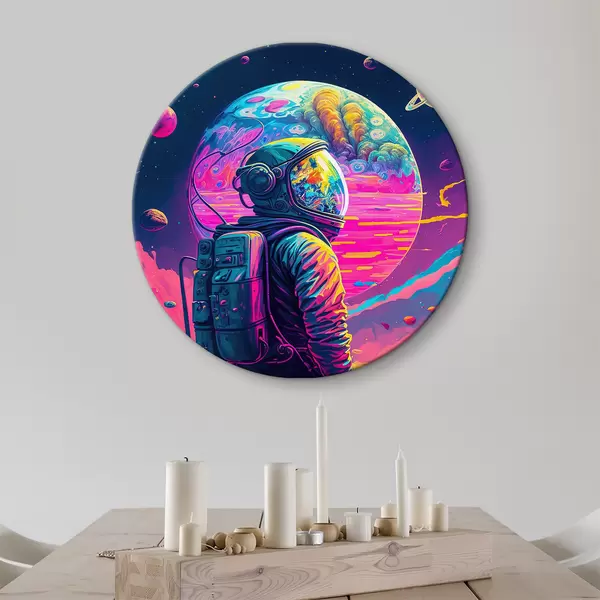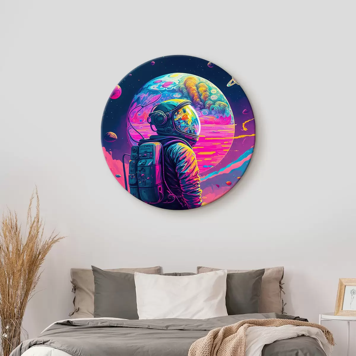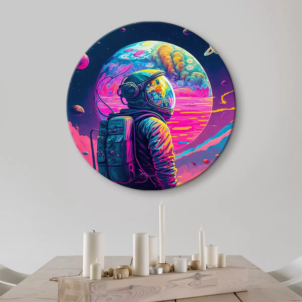 Quadri rotondi Illustrazione di un paesaggio futuro con montagne, pianeti e luna r33058