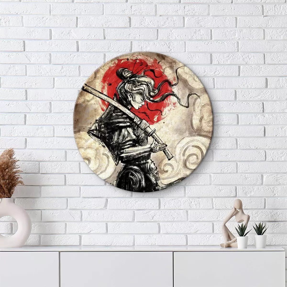 Quadri rotondi Bella ragazza samurai con una katana sulla spalla r33060