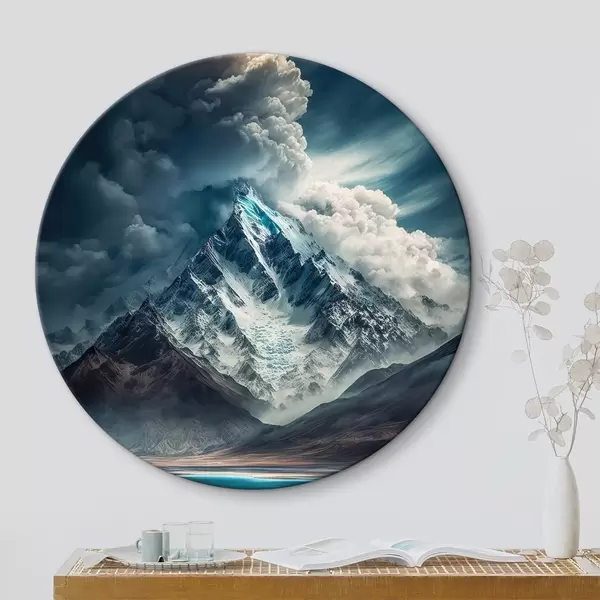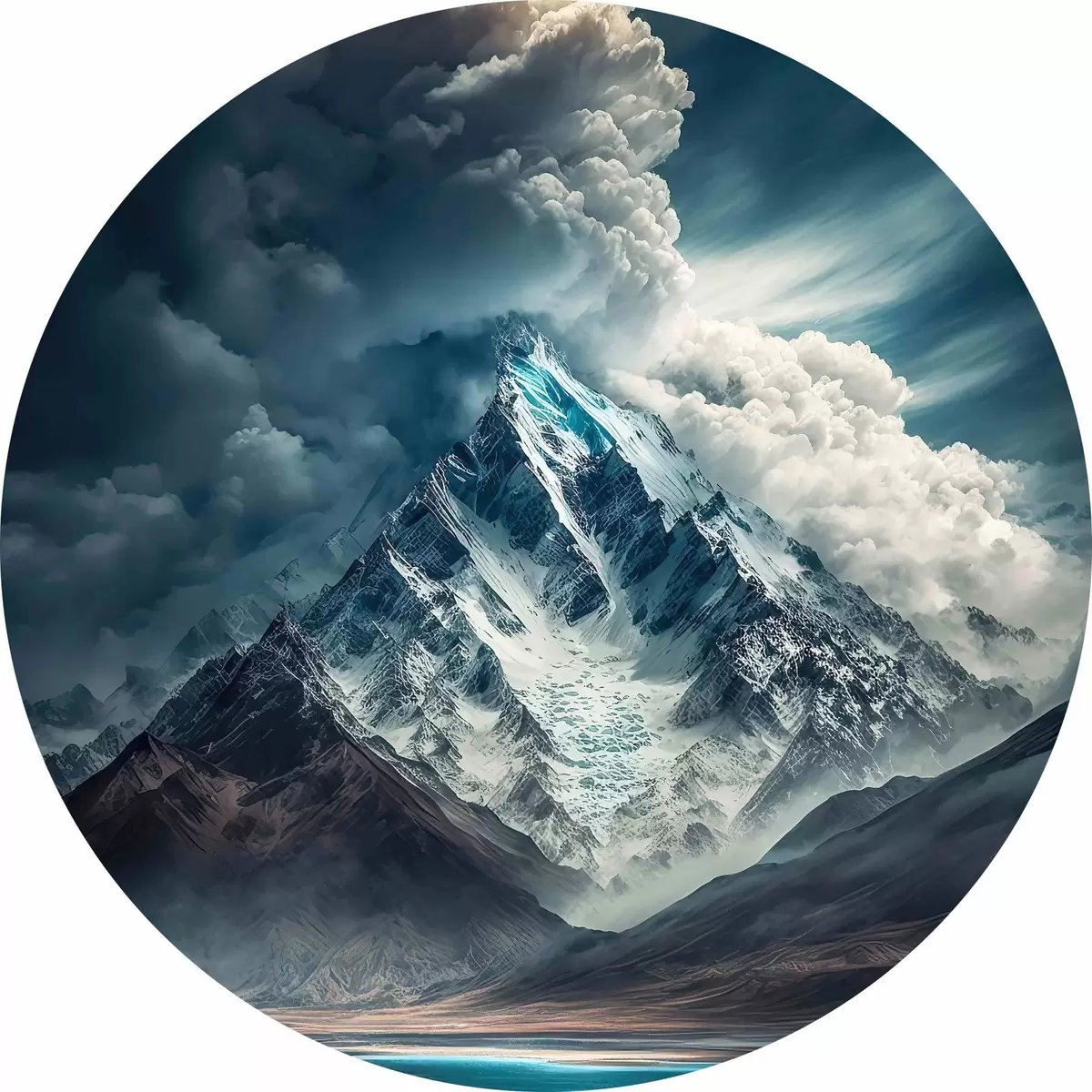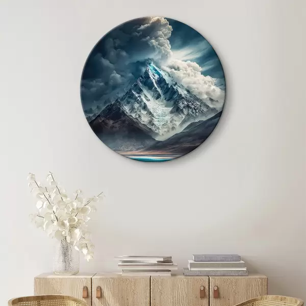 Quadri rotondi Montagne, lago e nuvole imponenti r33082