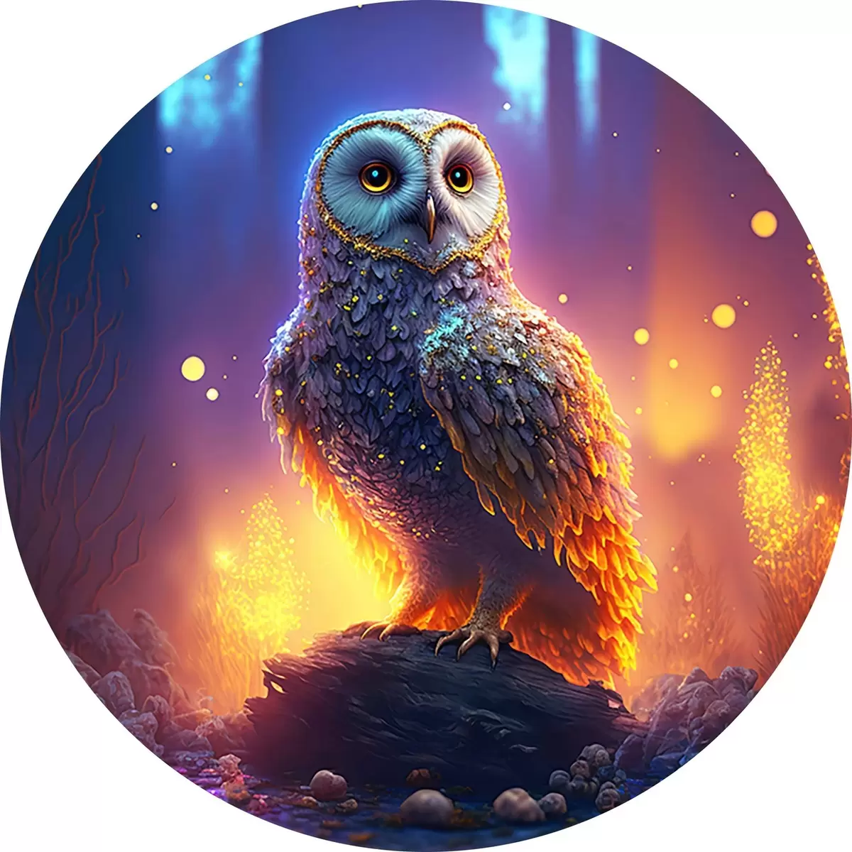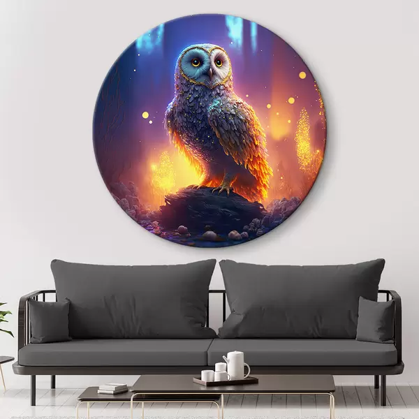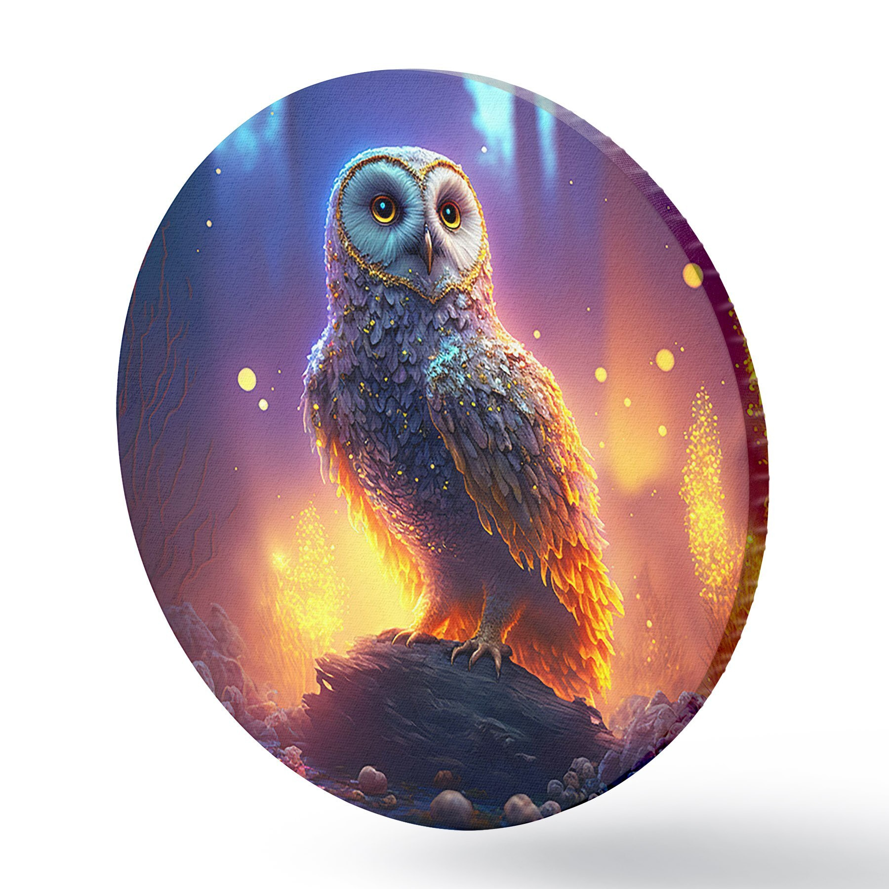 Quadri rotondi Un meraviglioso gufo su uno sfondo chiaro r33527