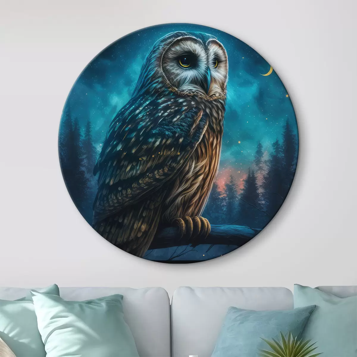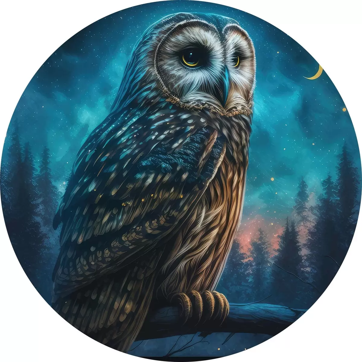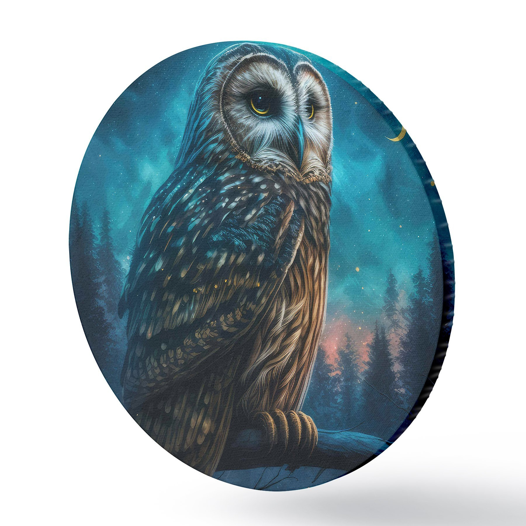 Quadri rotondi Gufo nella foresta notturna r33544
