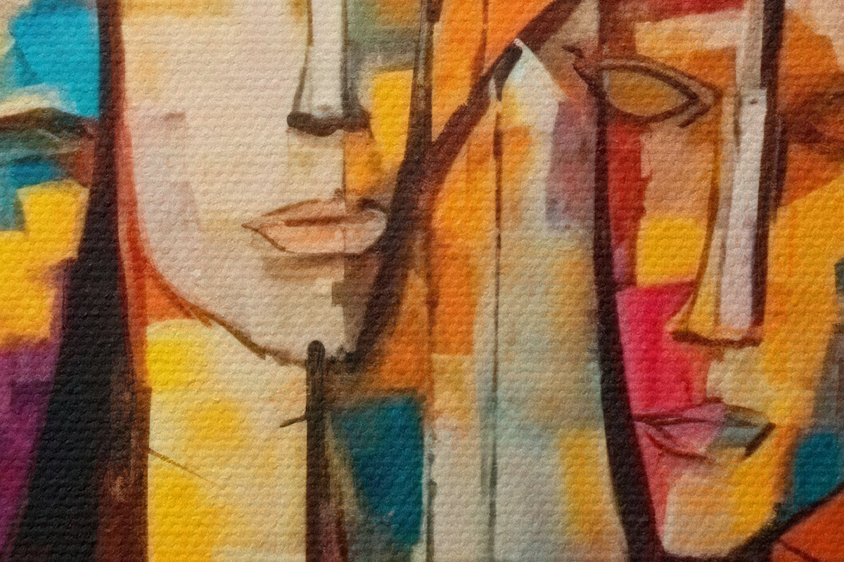 Immagine 3 volti surreali in tonalità arancione acceso Nr r33845