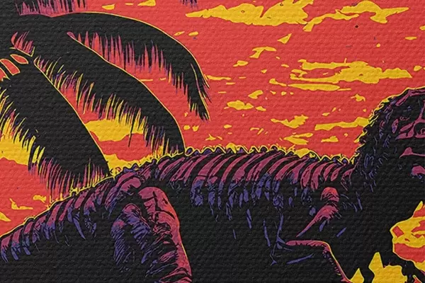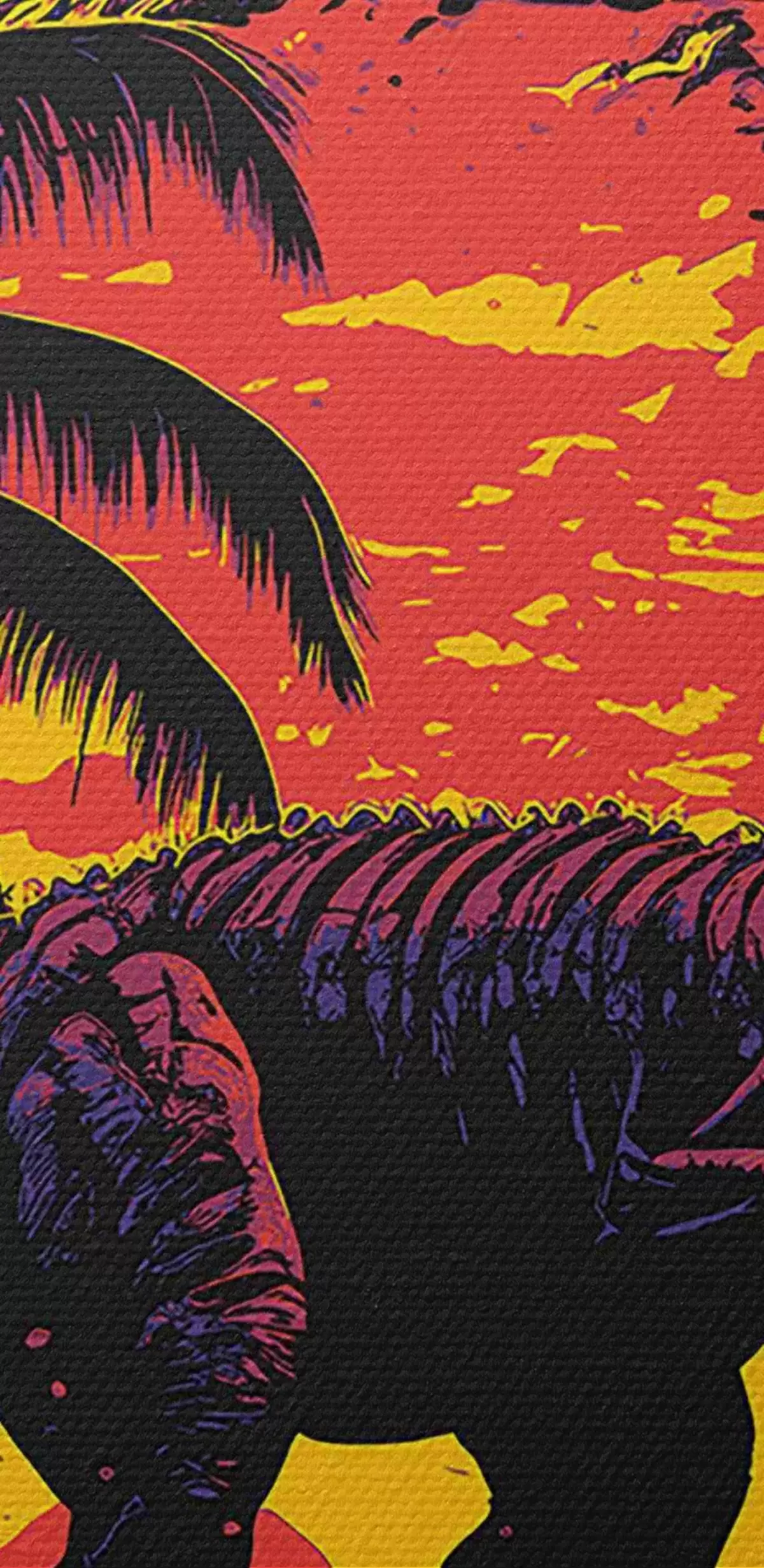 Immagine Dinosauro al tramonto tra le palme Nr r33894