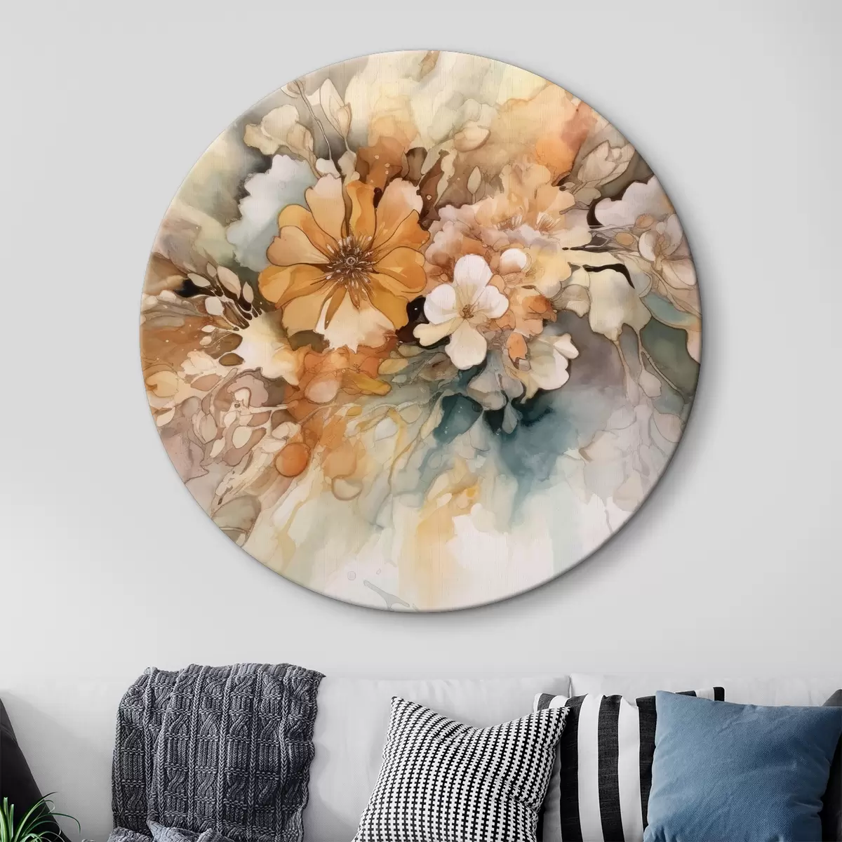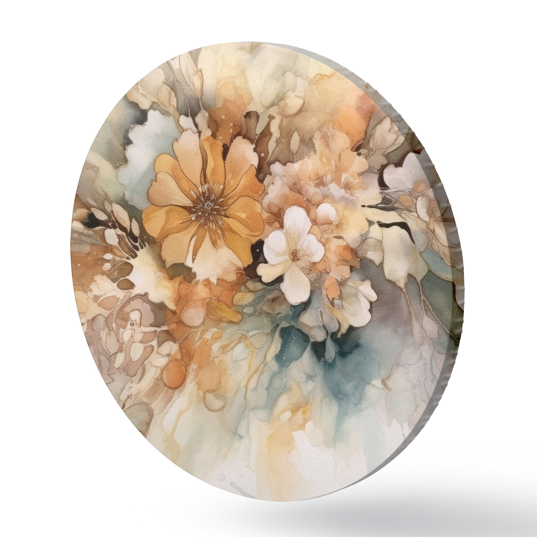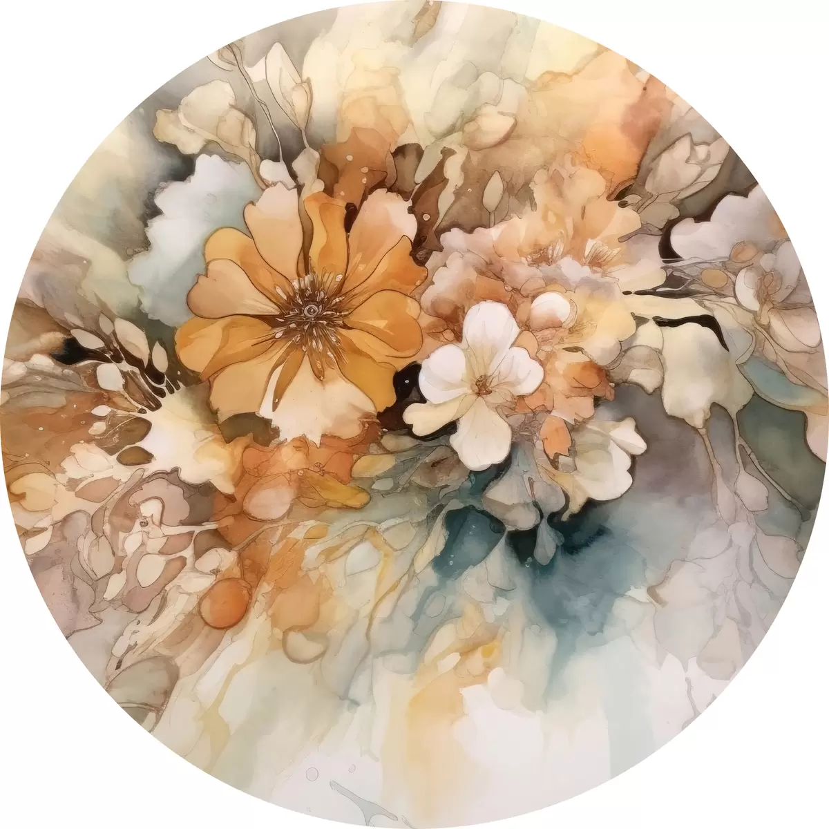 Quadri rotondi Fiori acquerellati arancioni r34202