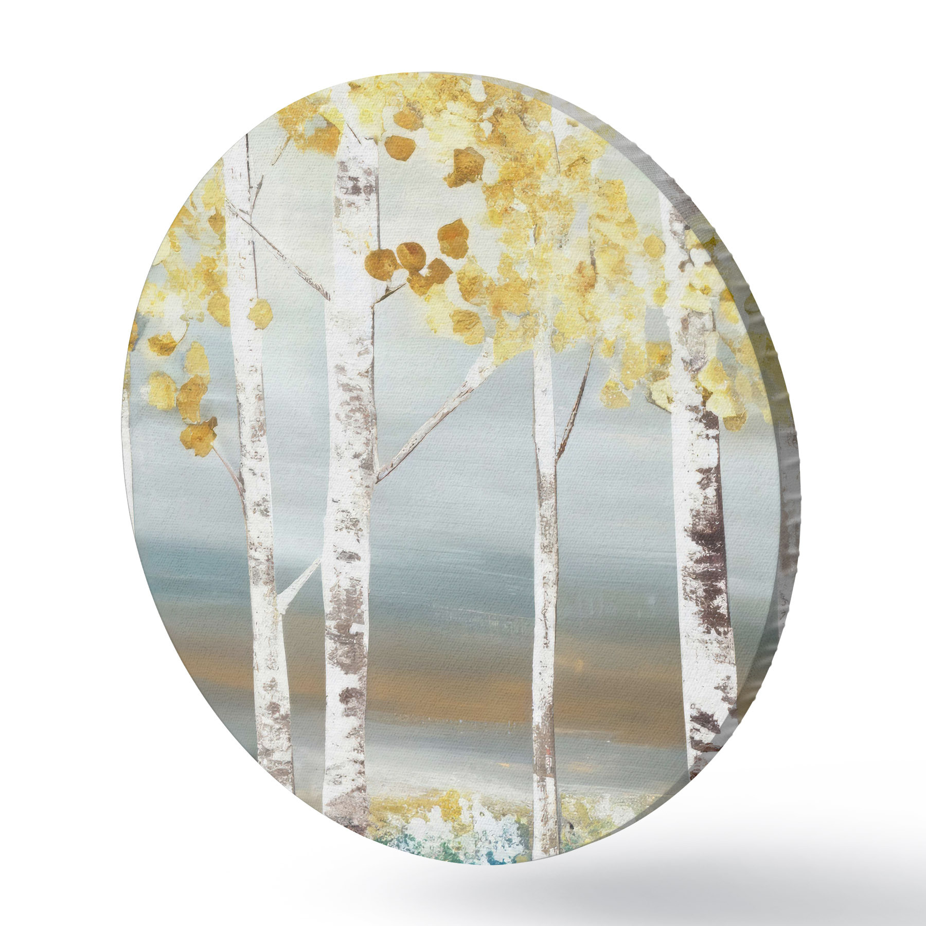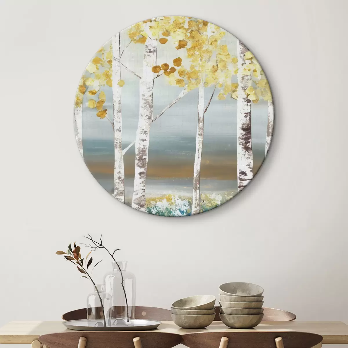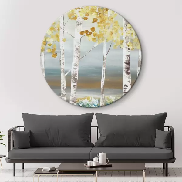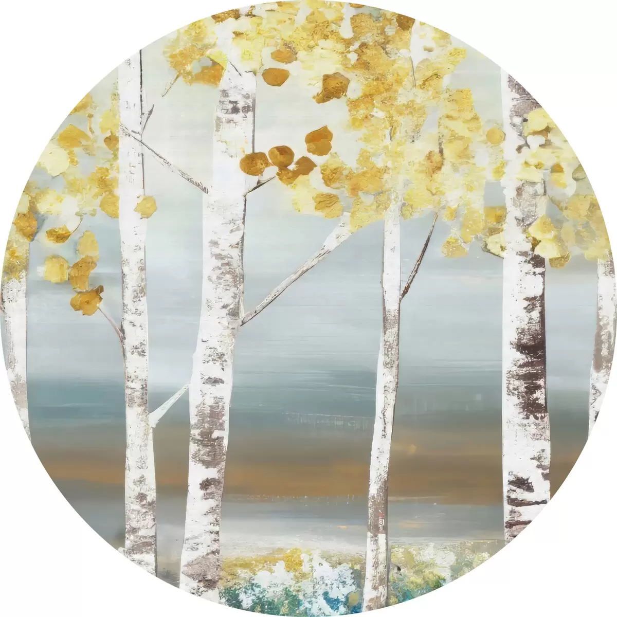 Quadri rotondi Pittura a olio con betulle sullo sfondo del tempo piovoso r34602