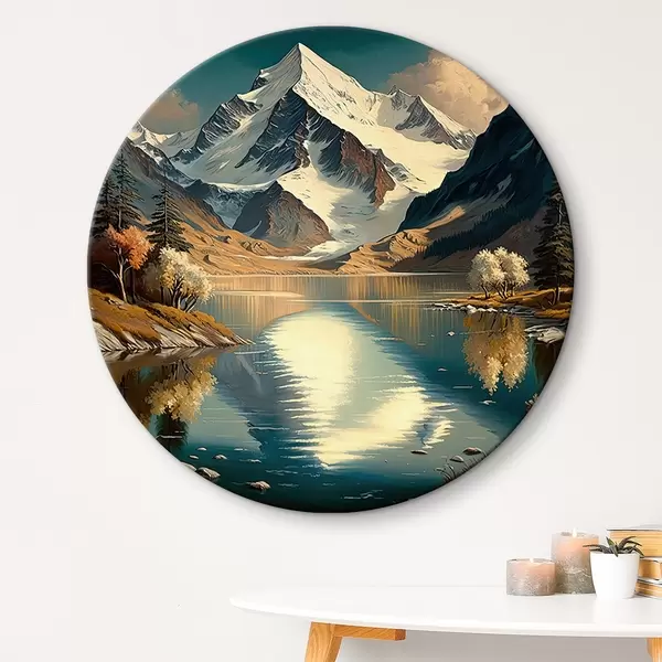 Quadri rotondi Pittura ad olio di montagna con alberi e neve r34631