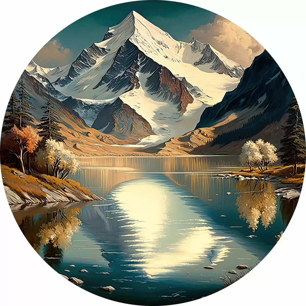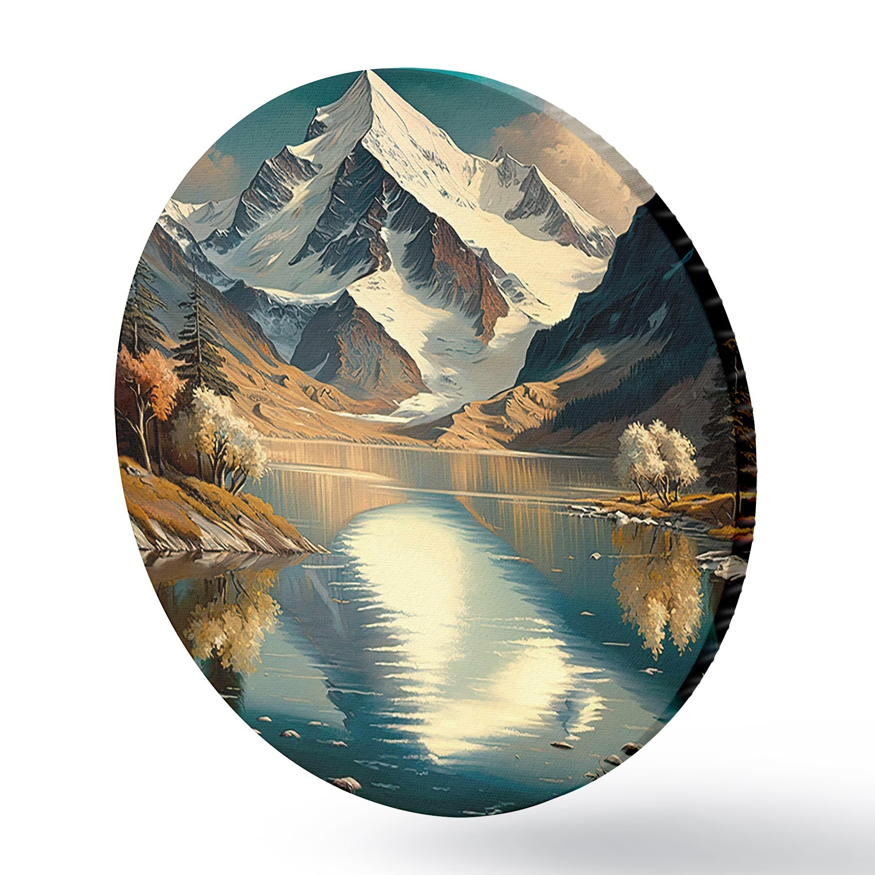 Quadri rotondi Pittura ad olio di montagna con alberi e neve r34631