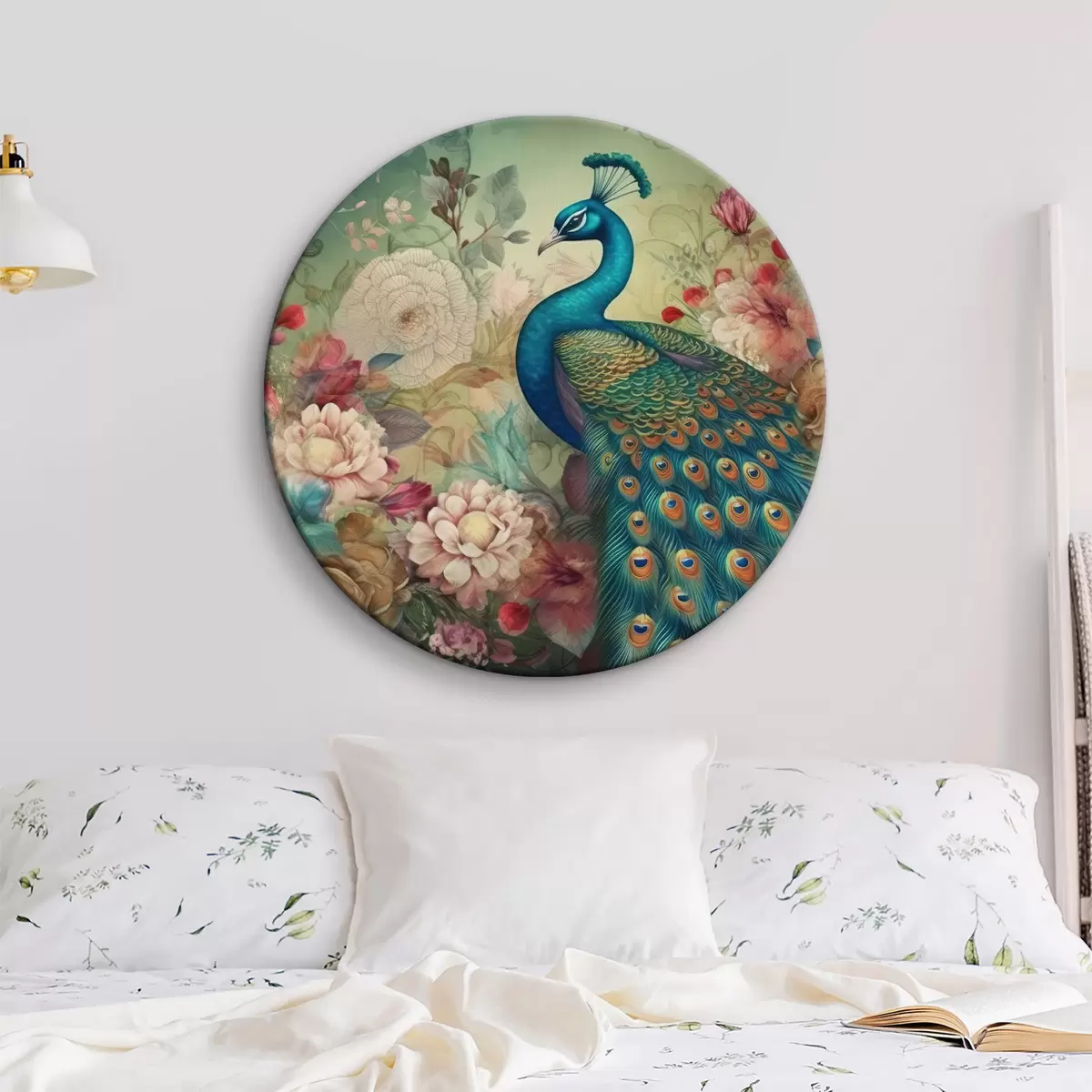 Quadri rotondi Pavone con fiori in stile vintage r34869