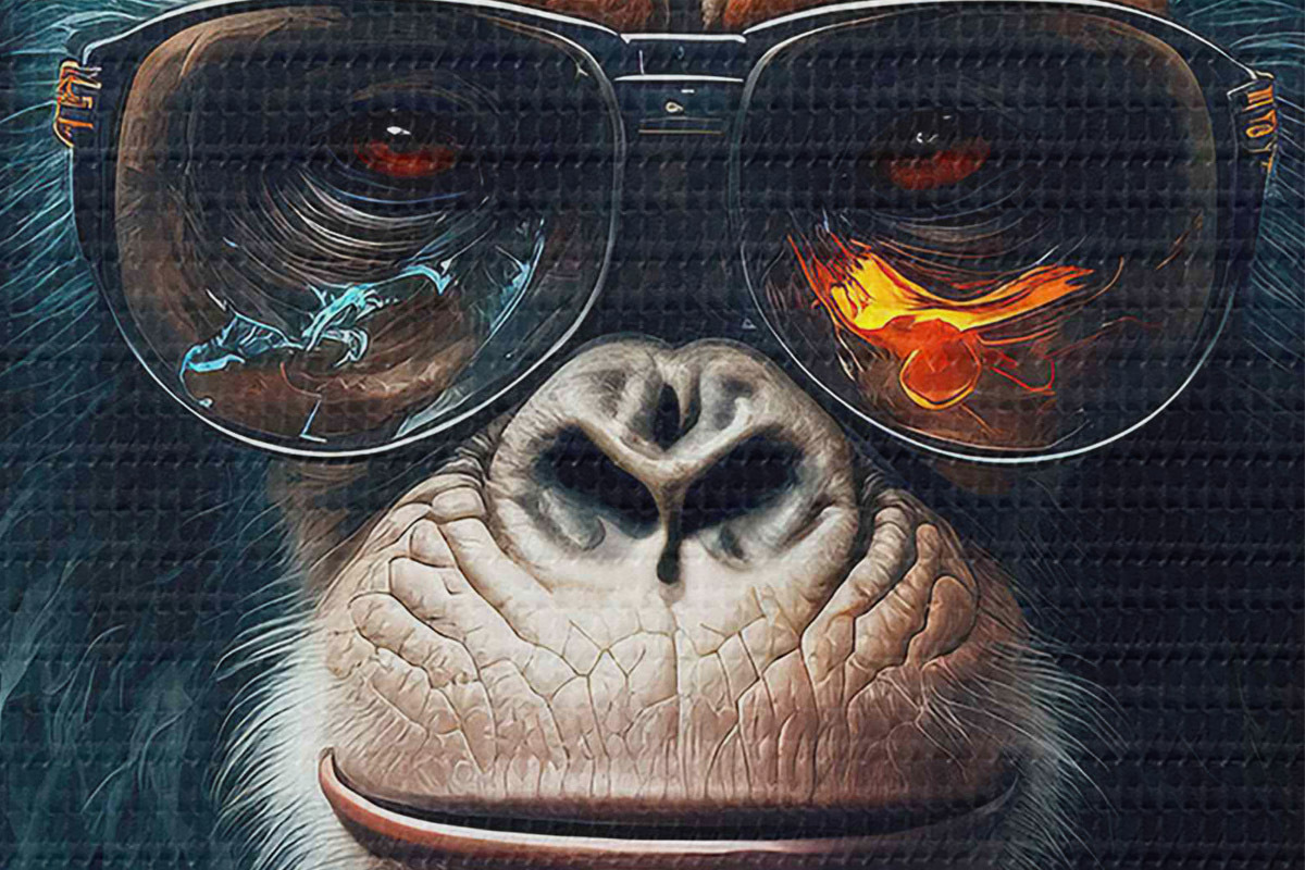 Quadri rotondi Gorilla disegnato a mano su sfondo chiaro r34882