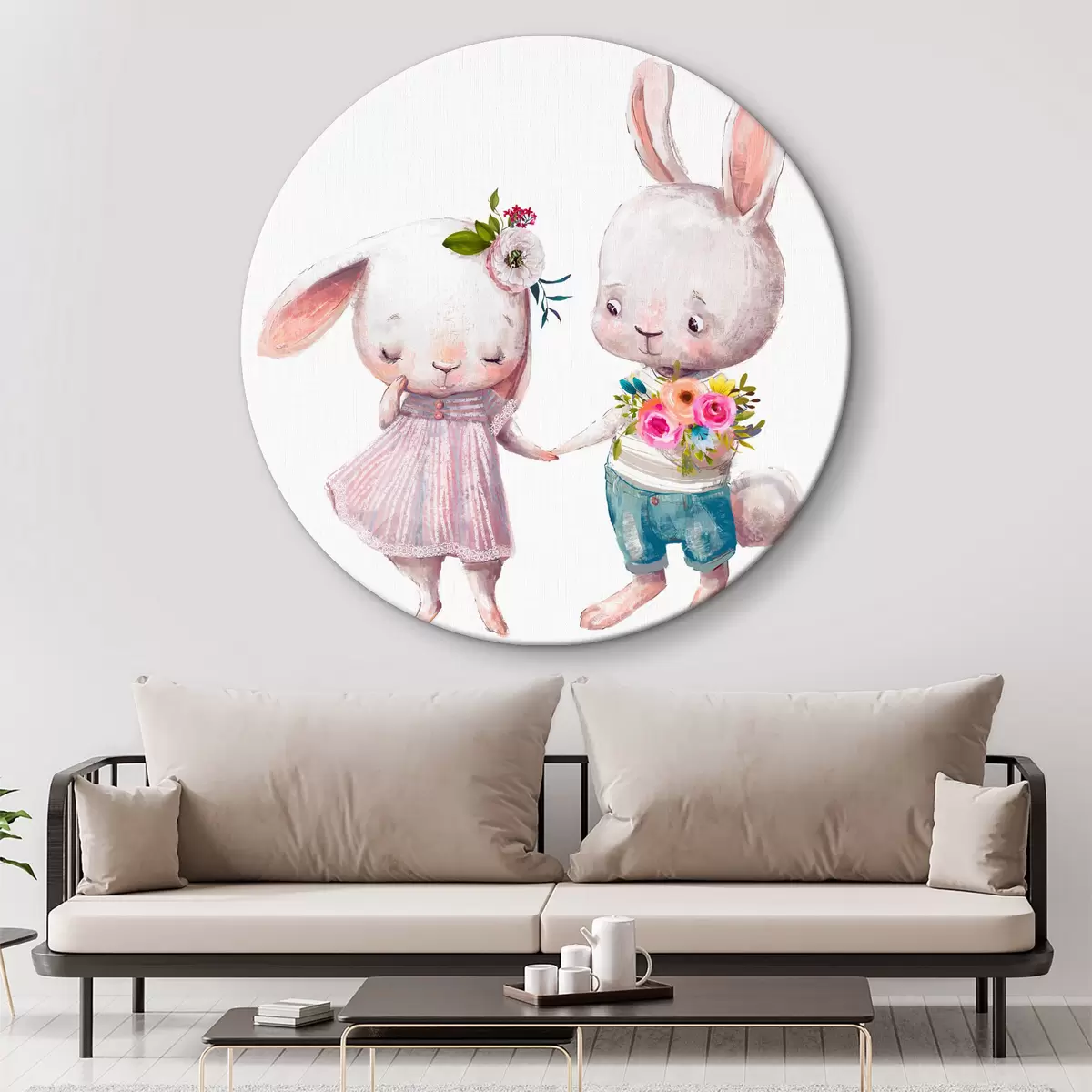 Quadri rotondi Una coppia di coniglietti Date e fiori r35055