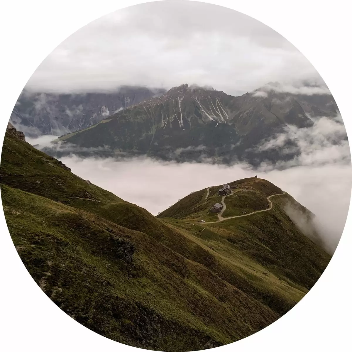 Quadri rotondi Fotografare una catena montuosa di giorno r35326