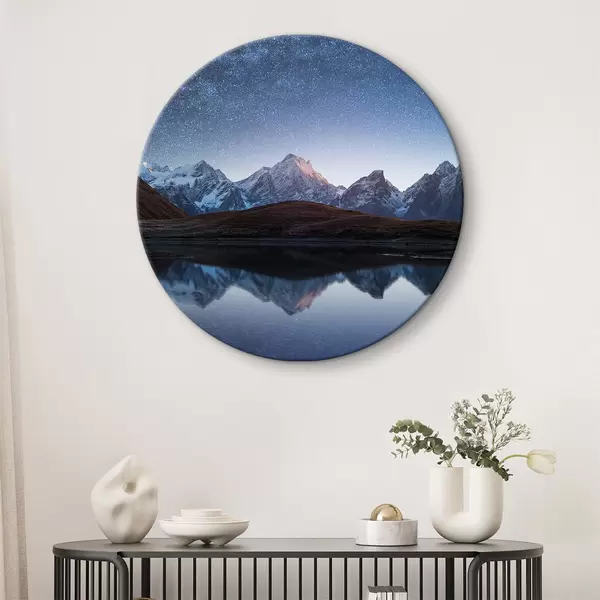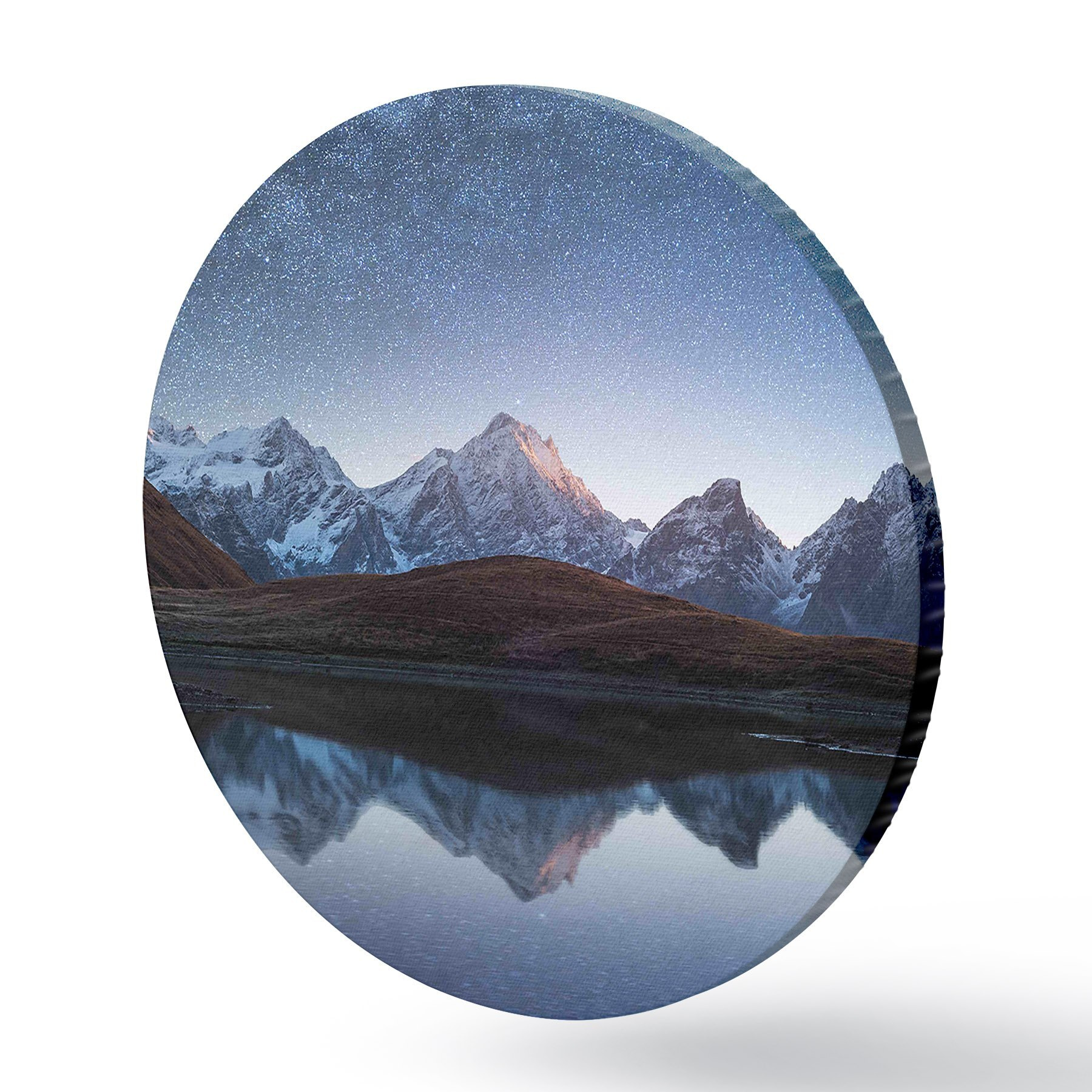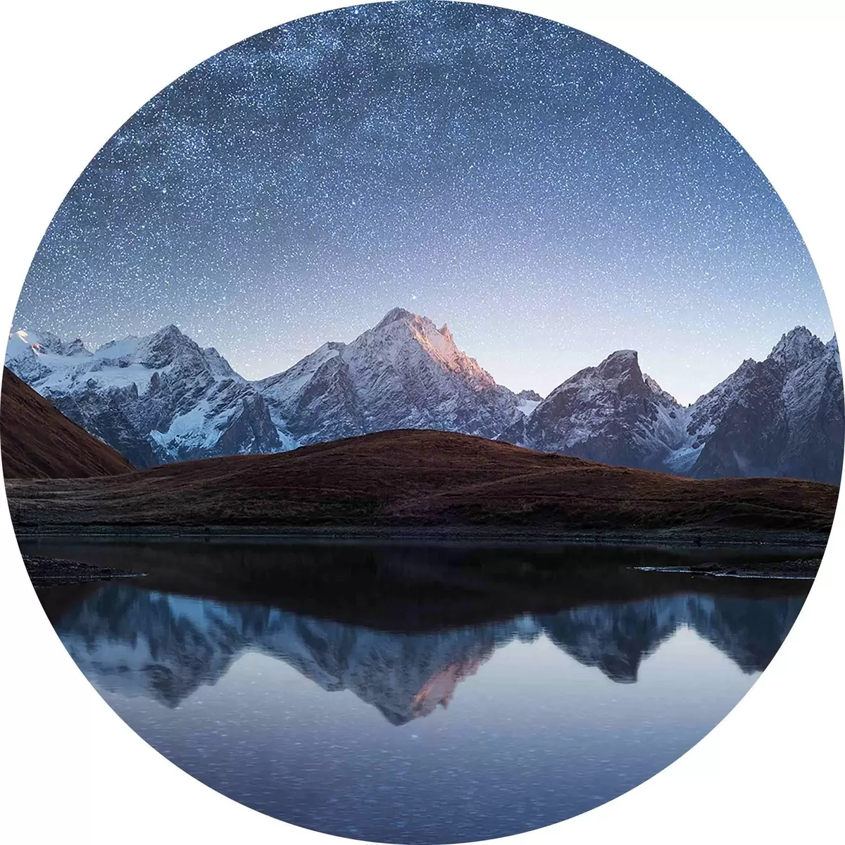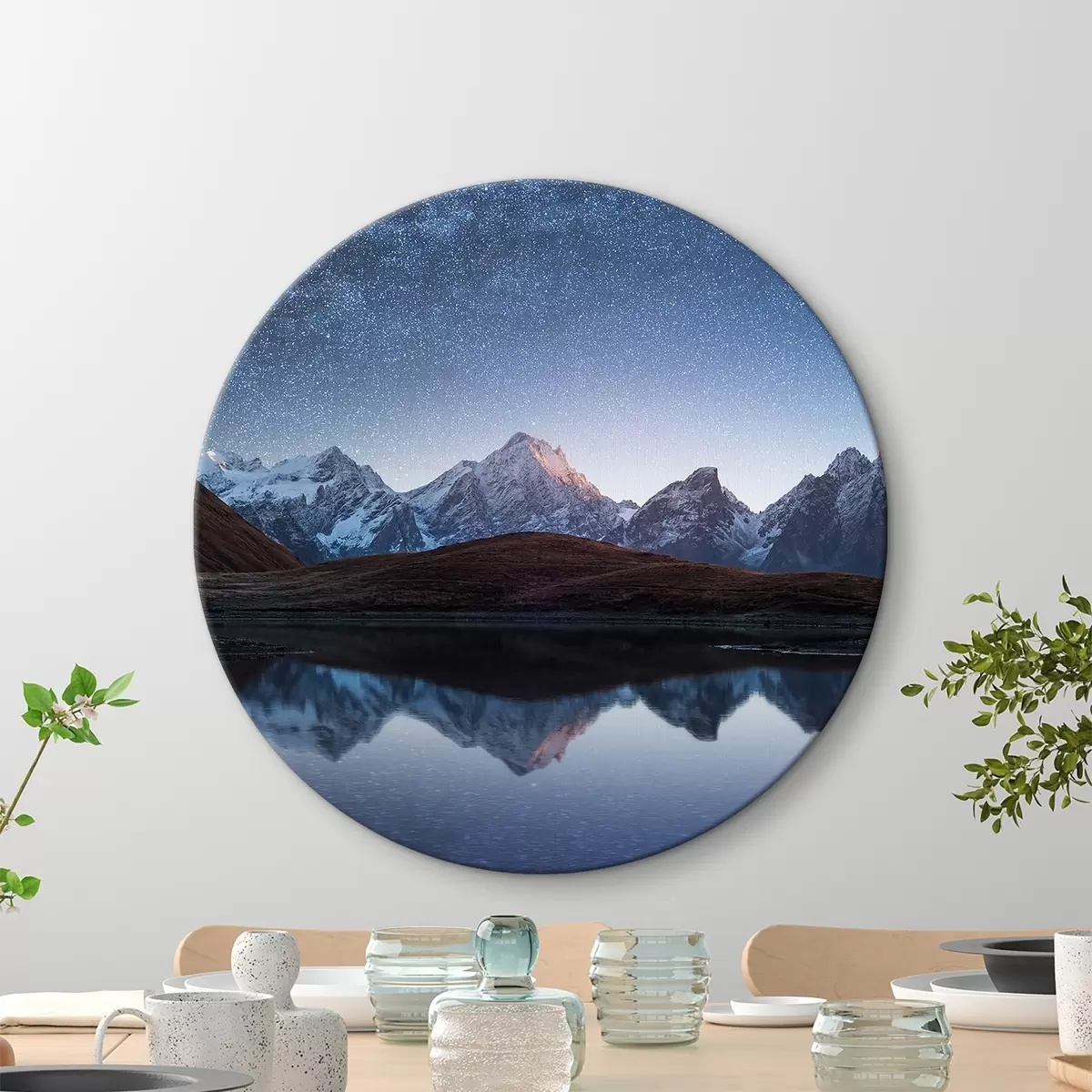 Quadri rotondi Paesaggio notturno con lago di montagna e cielo stellato r35372