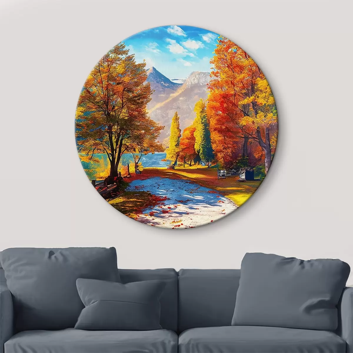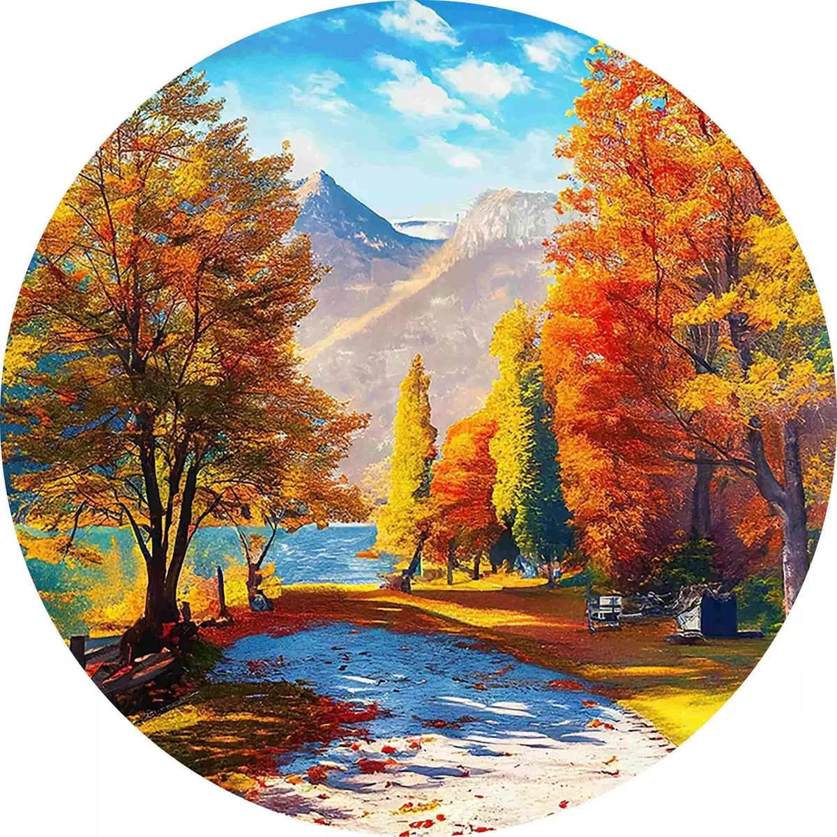Quadri rotondi foresta autunnale disegnata a mano r35375
