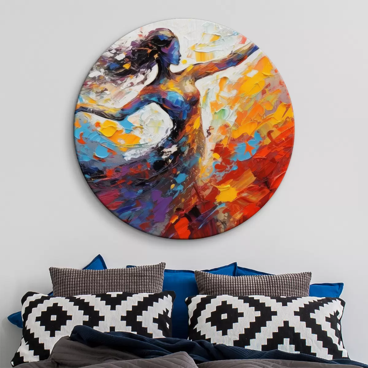 Quadri rotondi Una donna brillante in una danza nello stile dell'impressionismo r35379