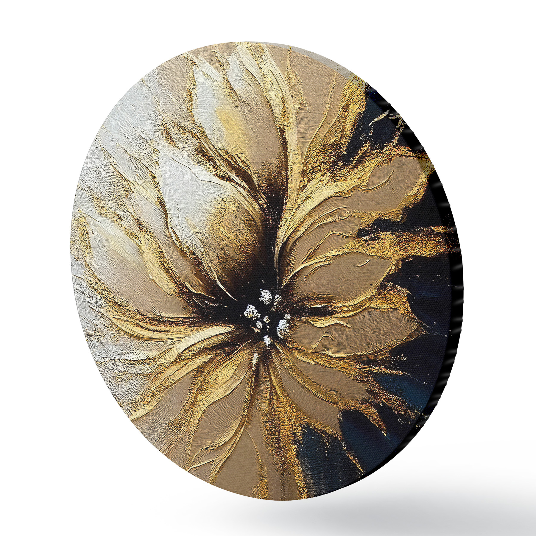 Quadri rotondi Grande fiore giallo astratto r35383