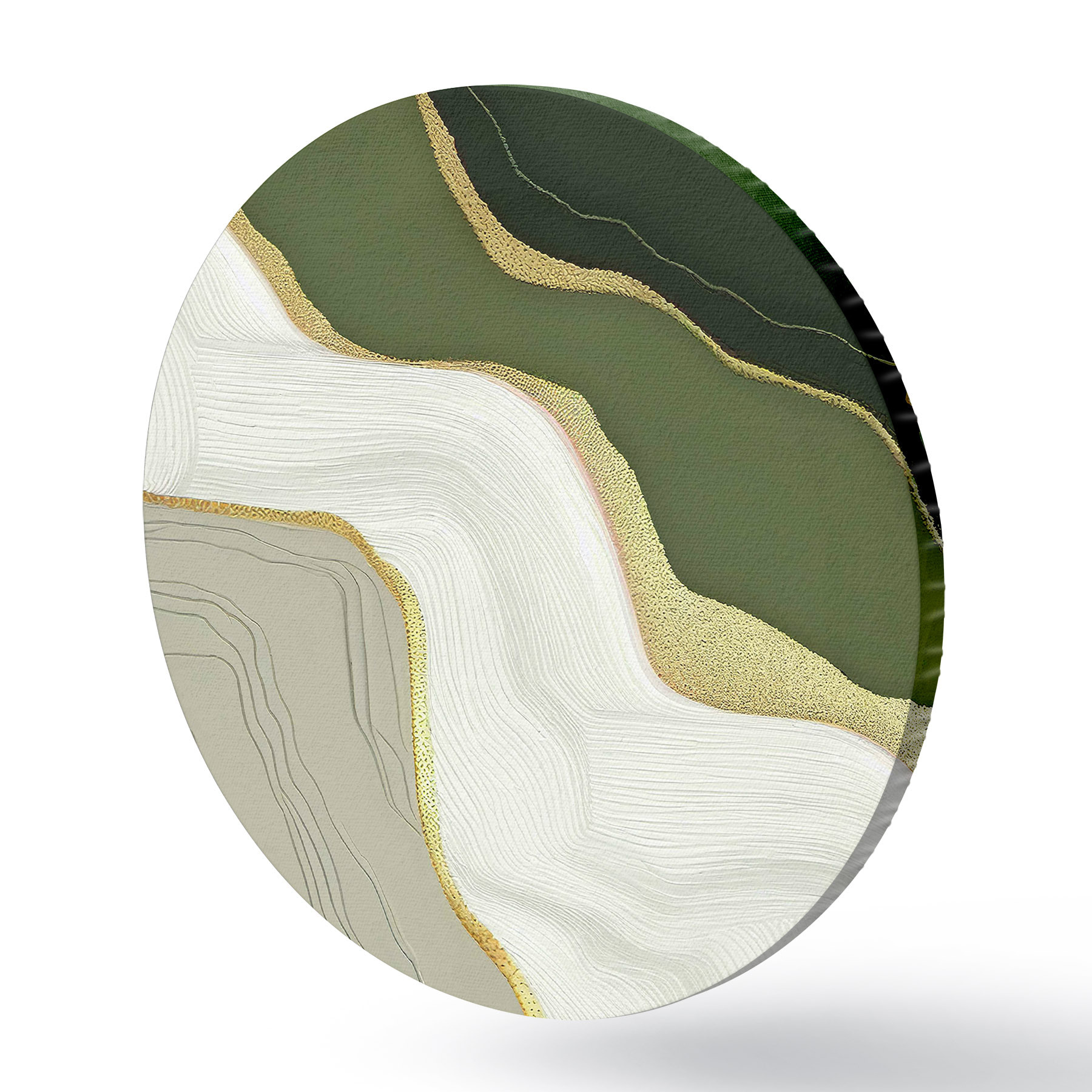 Quadri rotondi Un dipinto ad olio astratto realizzato con colori neri, bianchi, verdi e grigi r35427