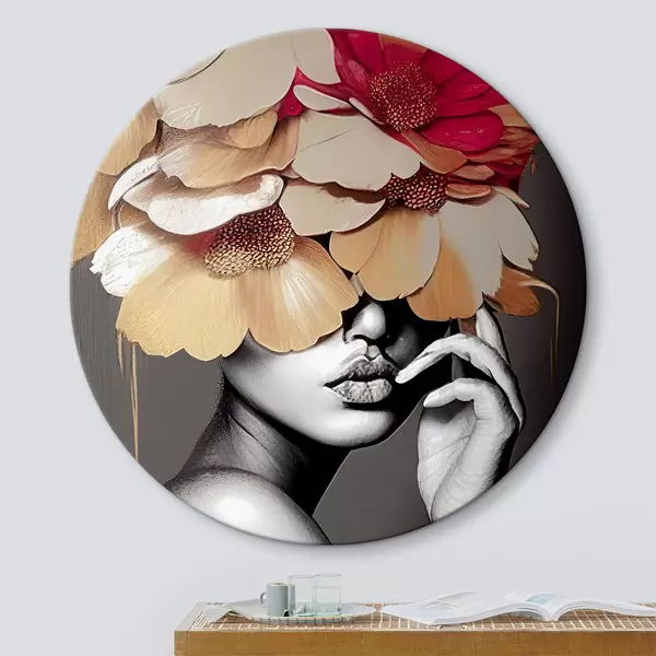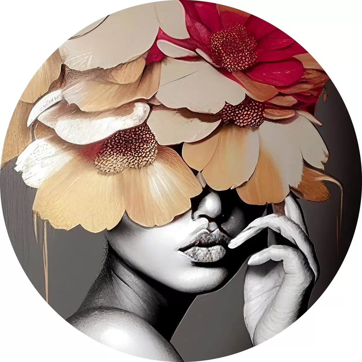 Quadri rotondi Fiore, pianta e bianco r35442