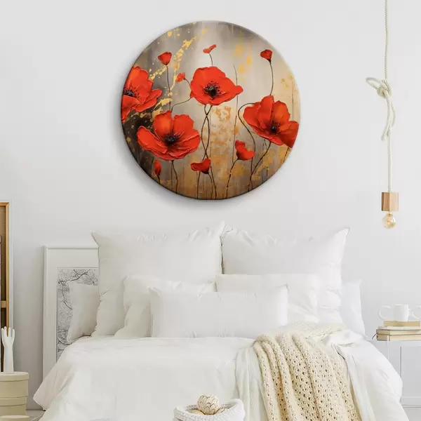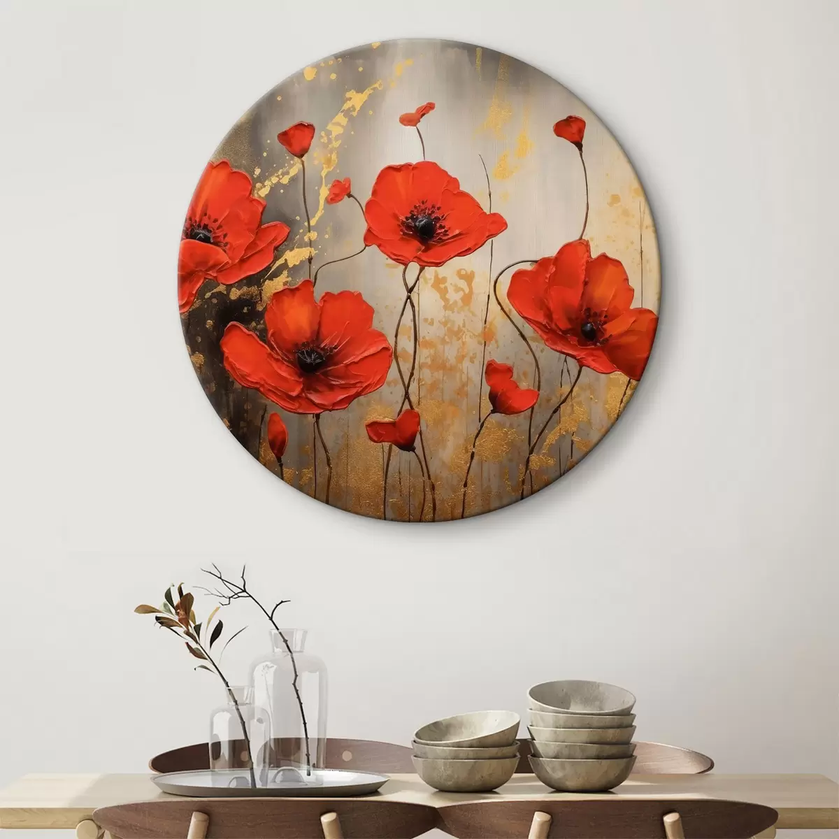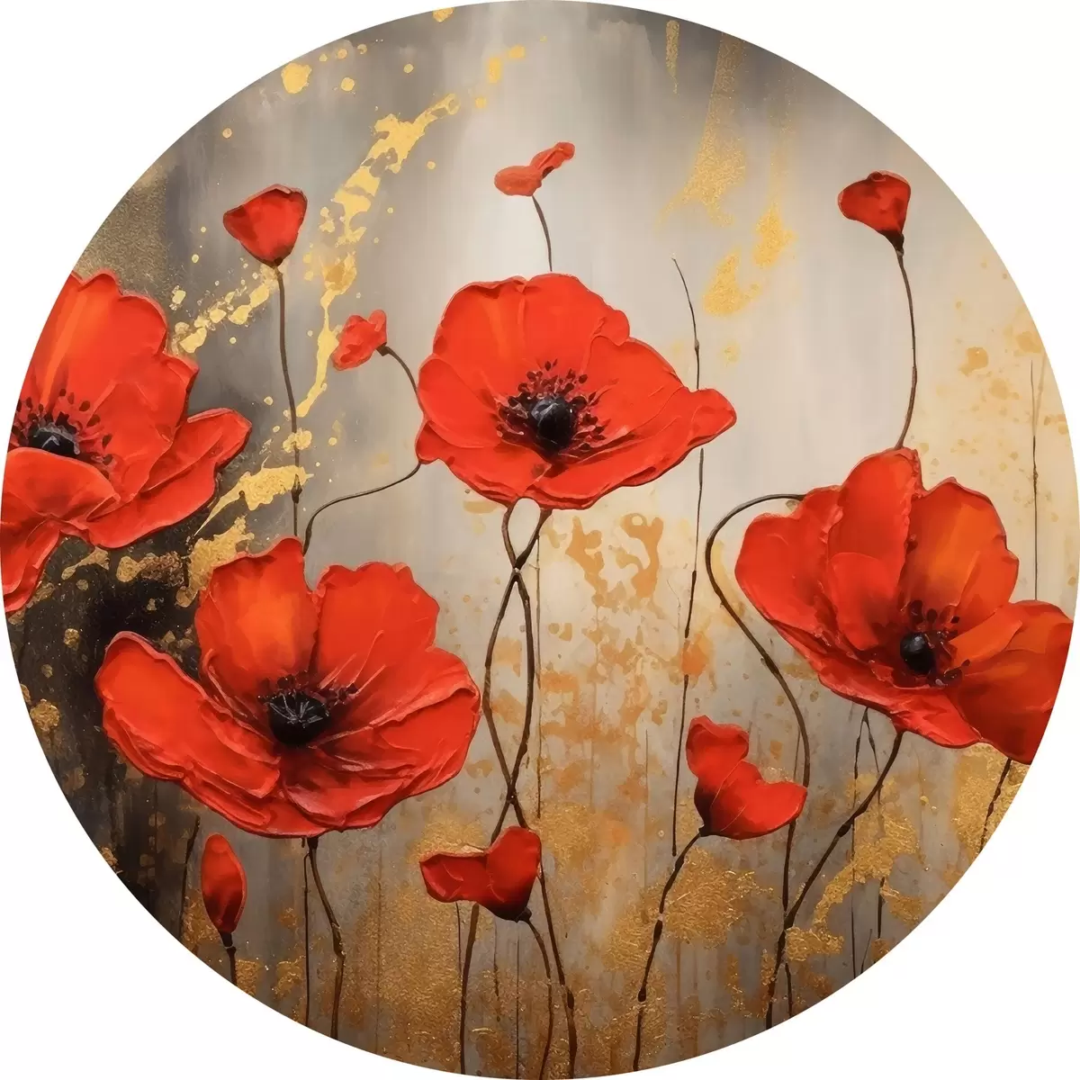 Quadri rotondi Papaveri su uno sfondo marrone di astrazione r35515
