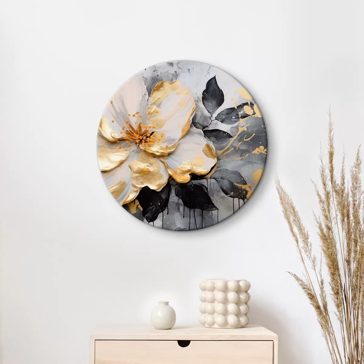 Quadri rotondi Grande fiore fantasia bianco r35528