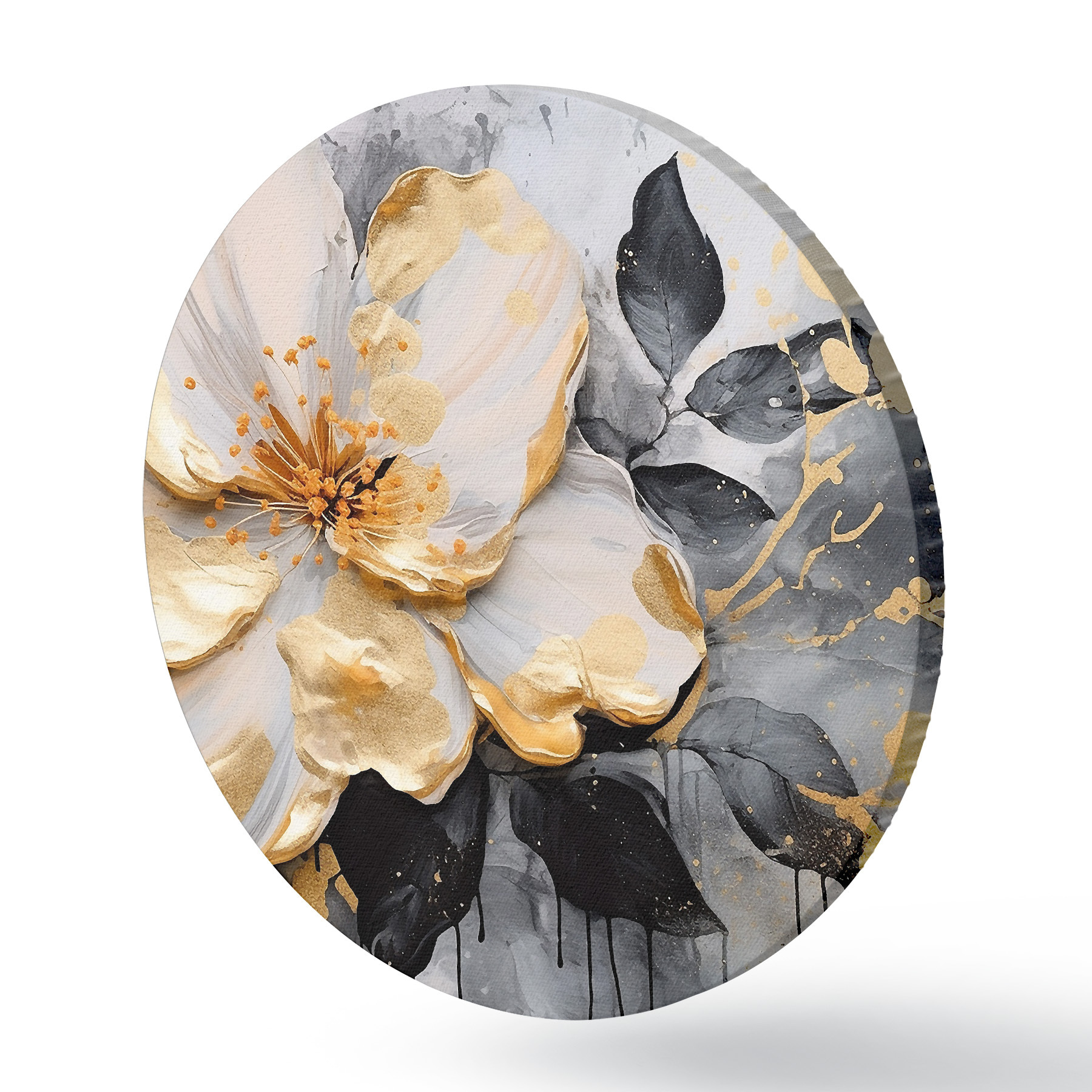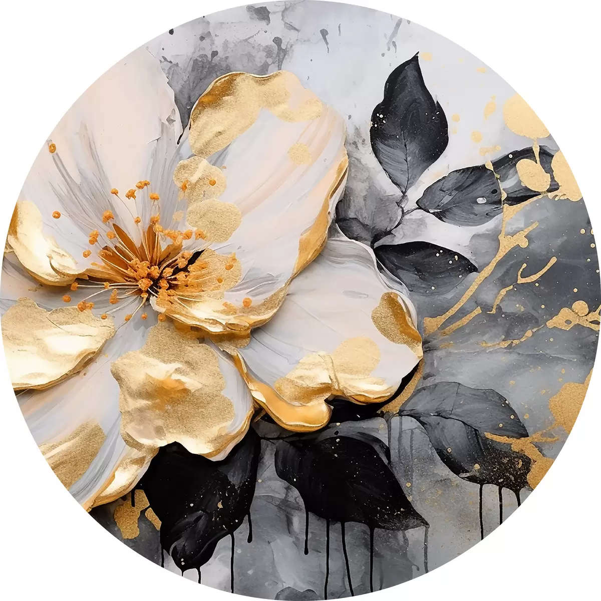 Quadri rotondi Grande fiore fantasia bianco r35528