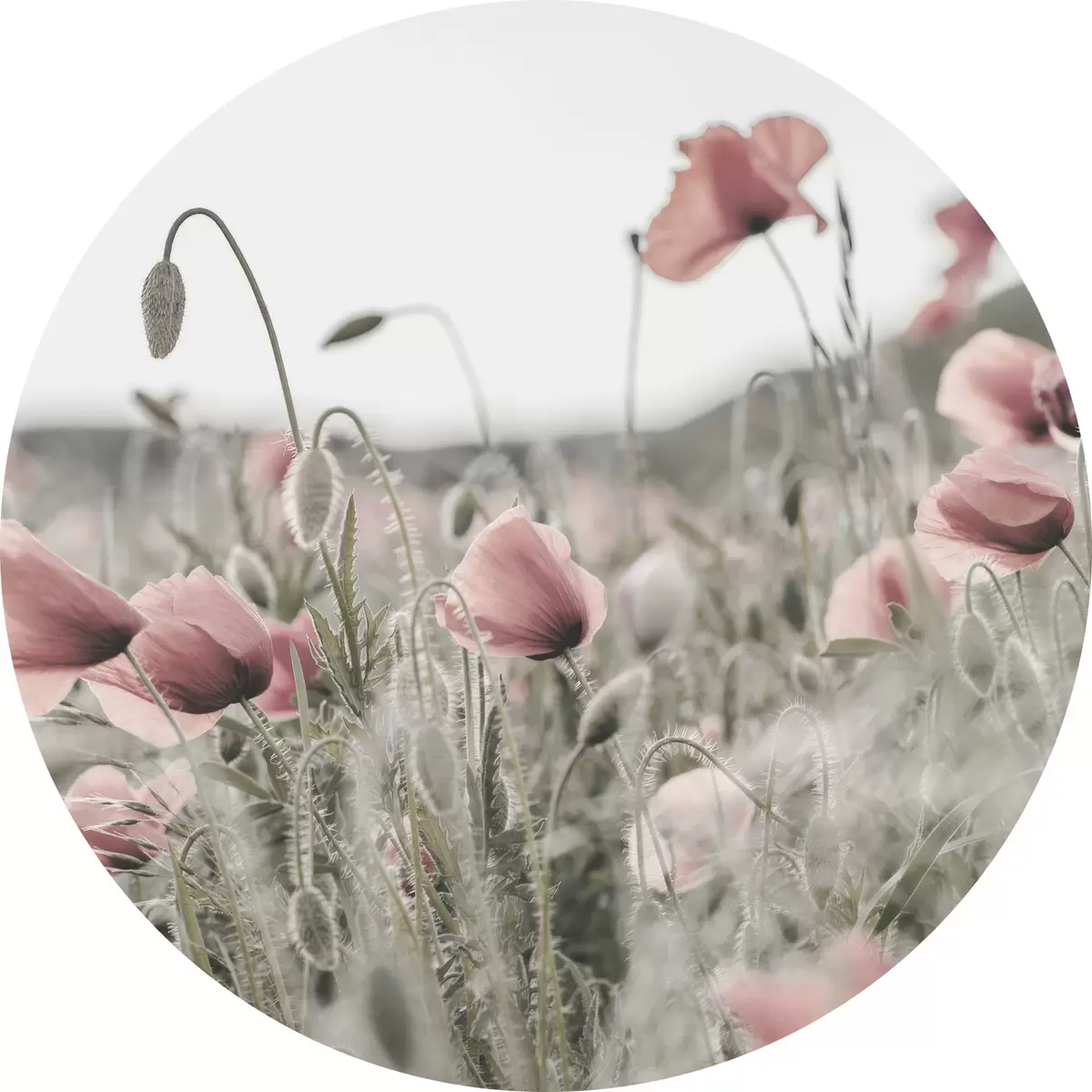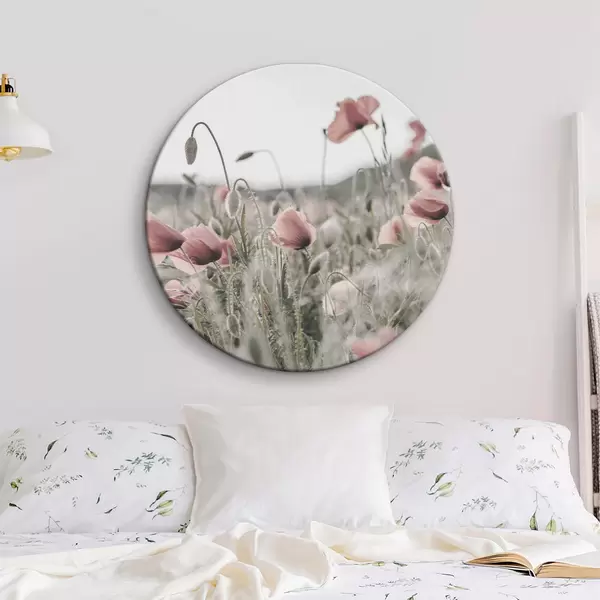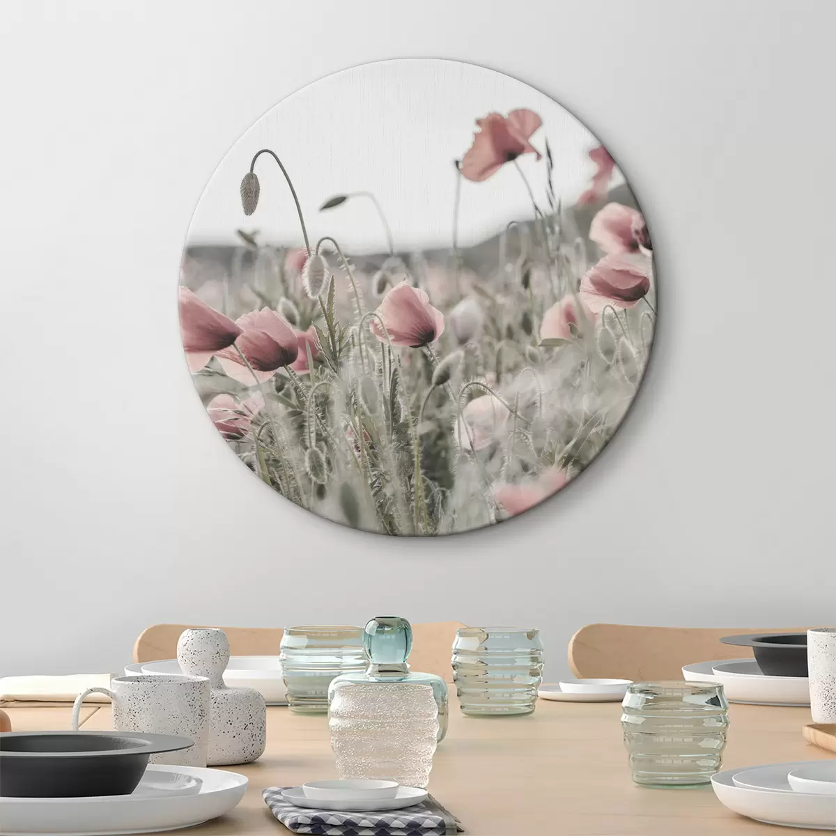 Quadri rotondi Dipinto di papaveri con colori tenui r35592