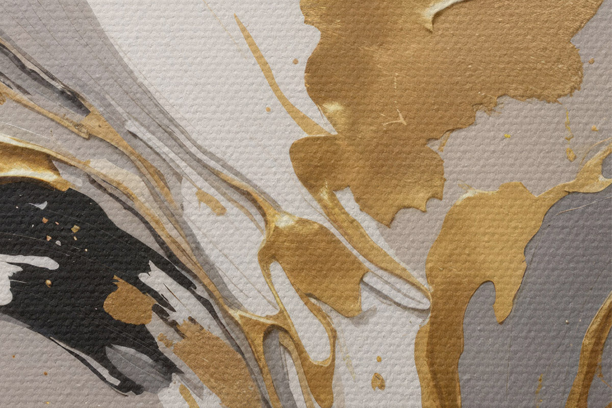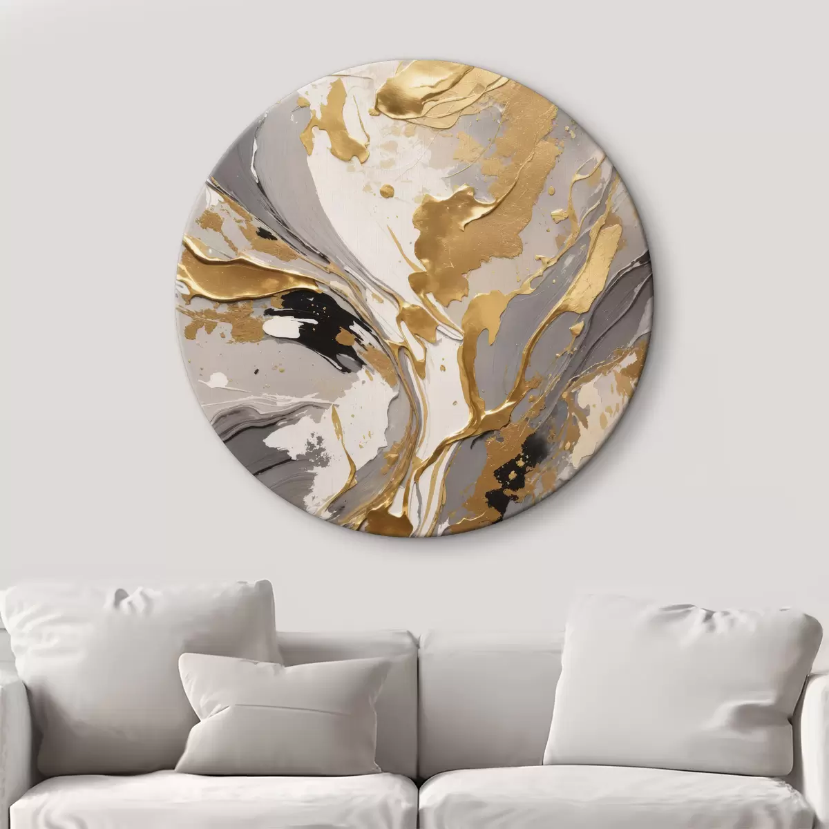 Quadri rotondi Movimento astratto e fluido con accenti metallici r35656