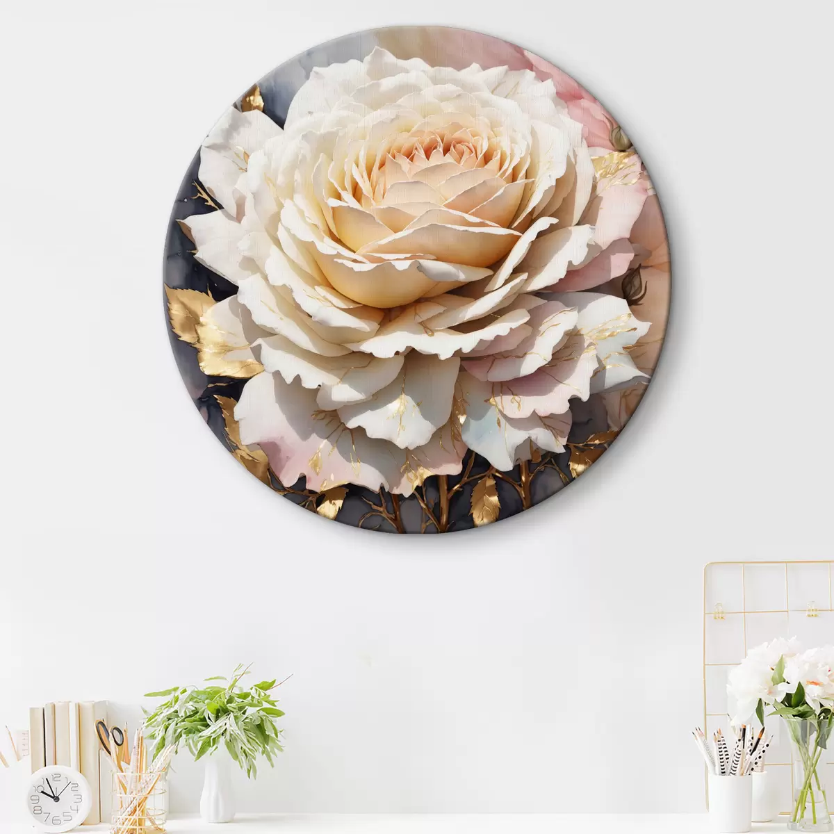 Quadri rotondi Rosa bianca in acquerello con foglie r35662