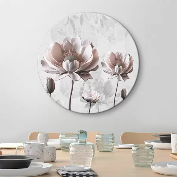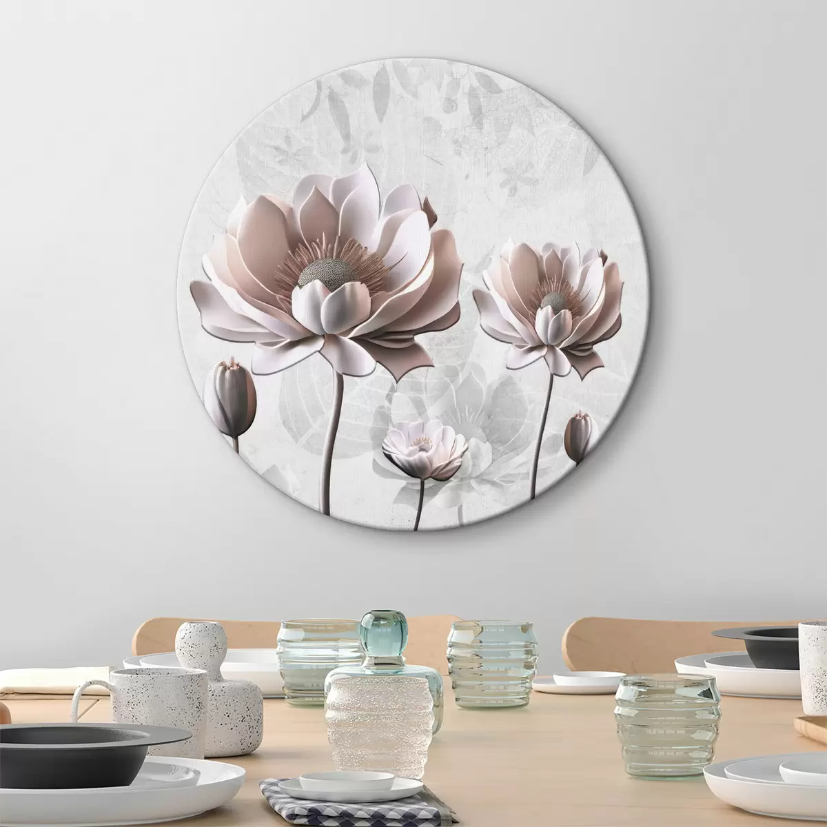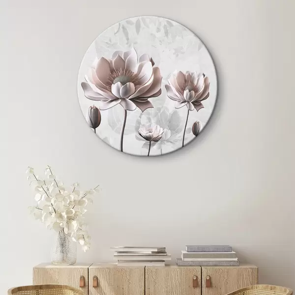 Quadri rotondi Fiori bianchi su sfondo bianco r35736