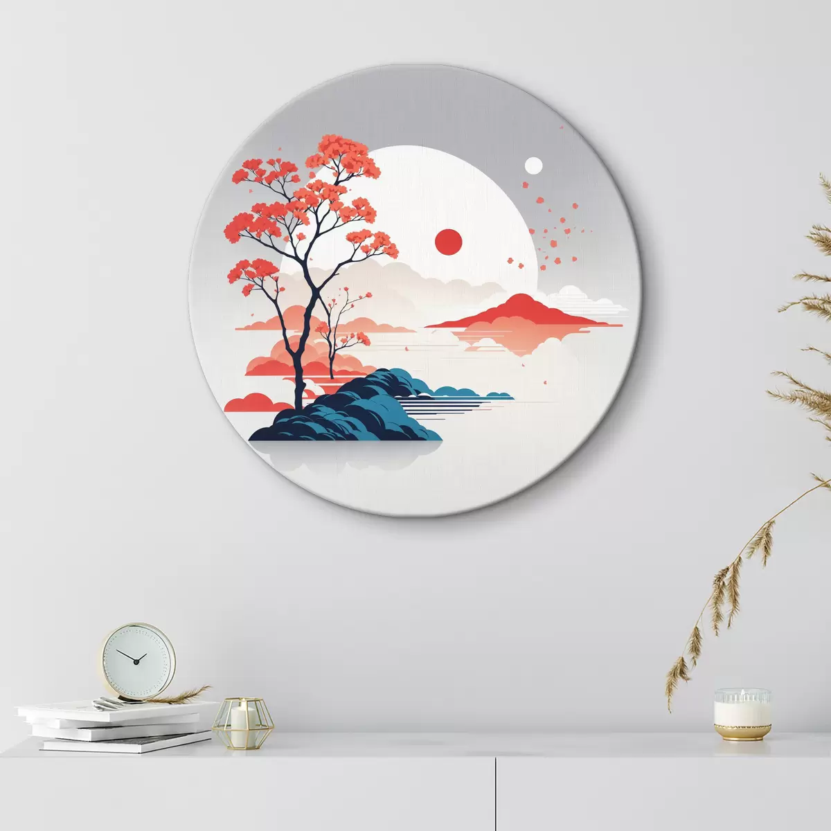 Quadri rotondi Fiori di ciliegio sullo sfondo dell'alba r35820