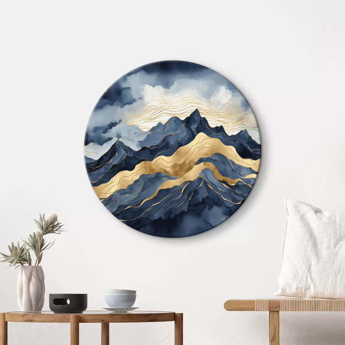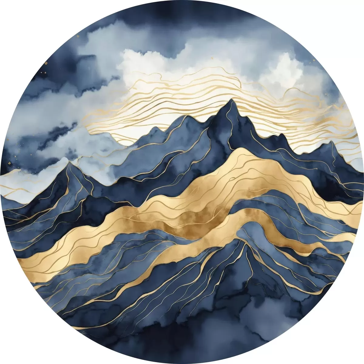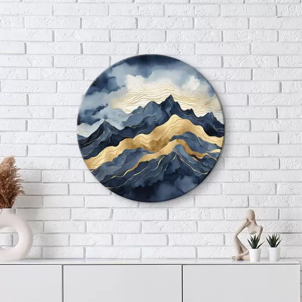 Quadri rotondi Montagne blu sullo sfondo di un cielo stellato r35826