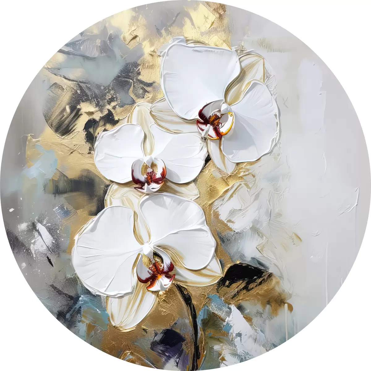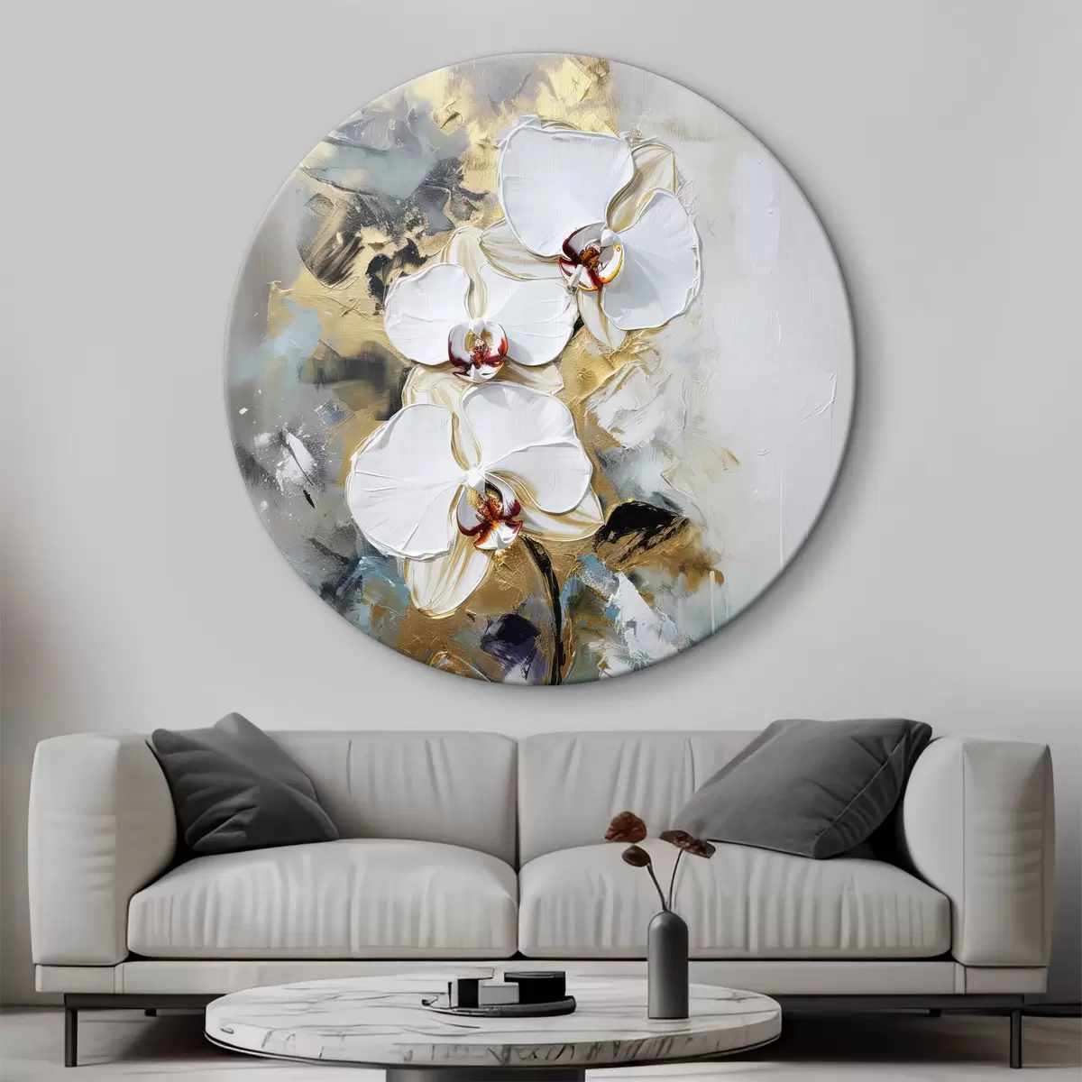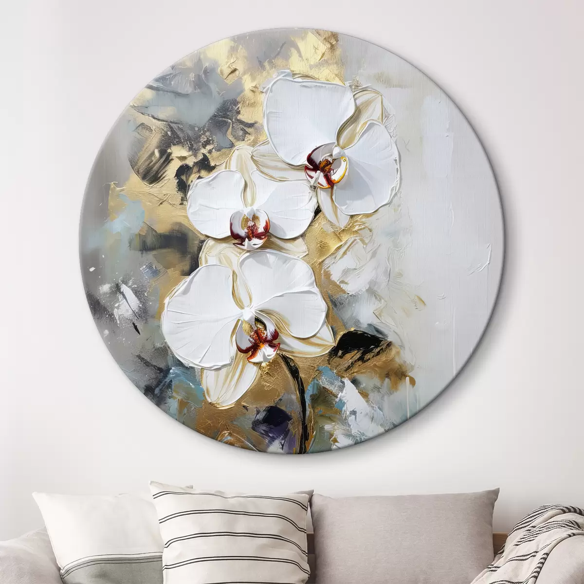 Quadri rotondi Sinfonia di orchidee con pennellate astratte r35904