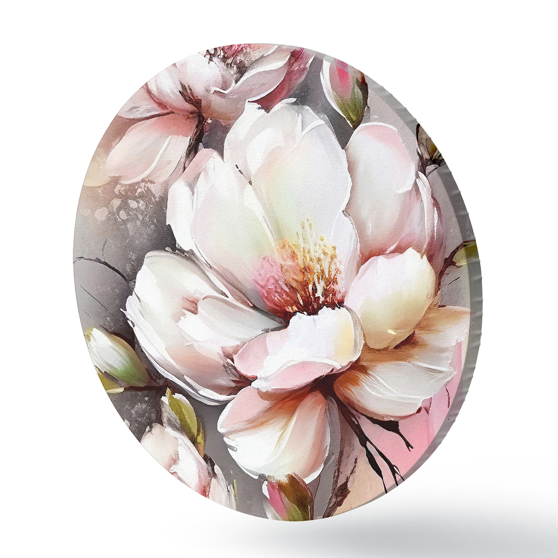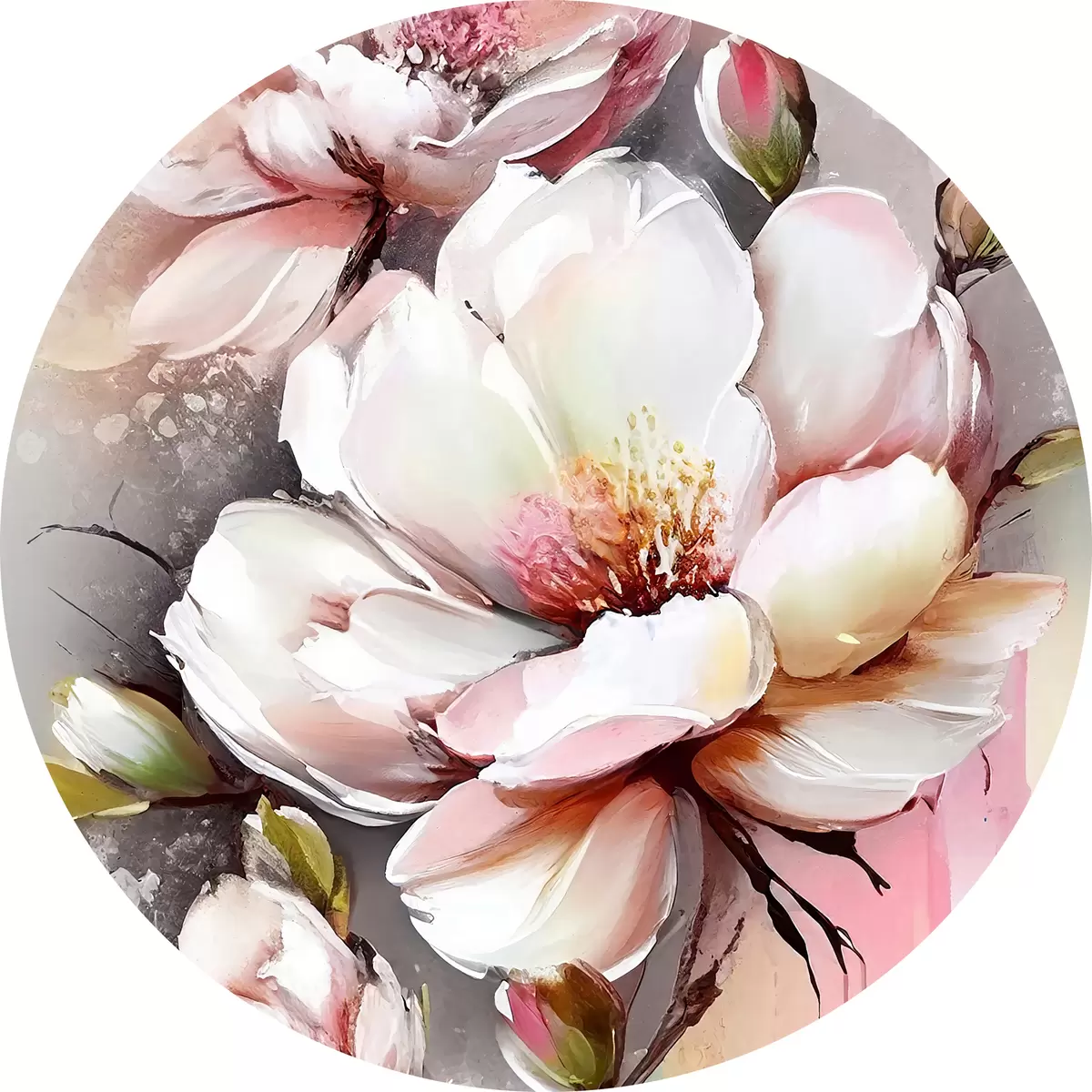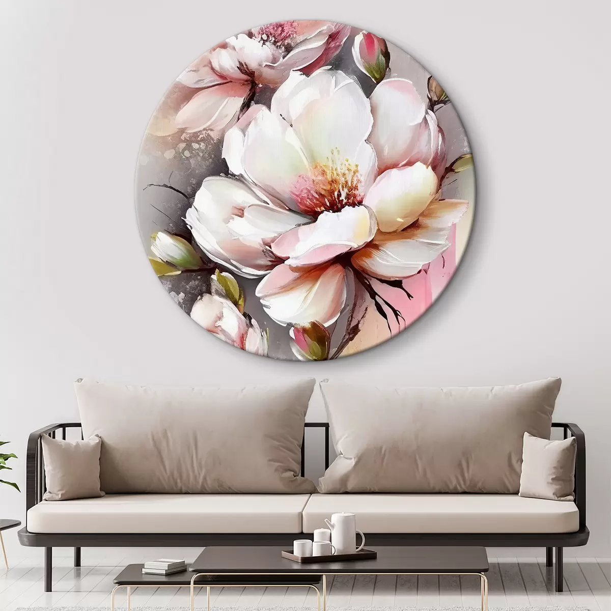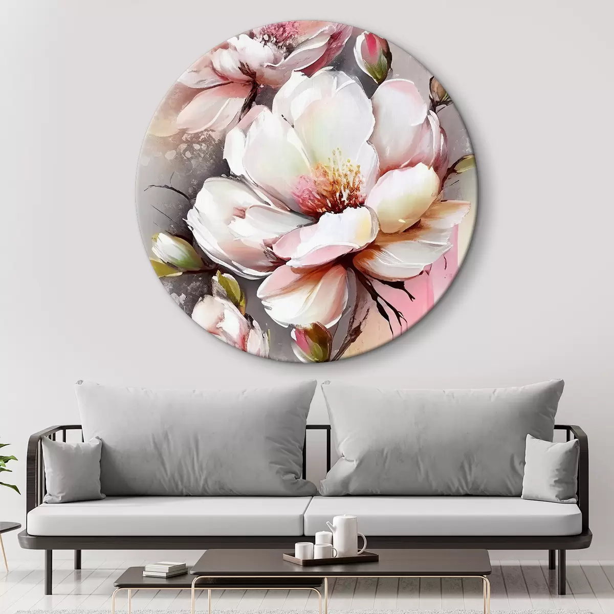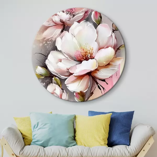 Quadri rotondi Grazia in fiore: Petali morbidi e sfumature delicate r35925