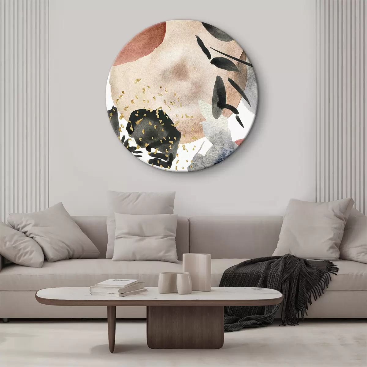 Quadri rotondi Poster astratto acquerellato con macchie rosse, nere e beige r35937