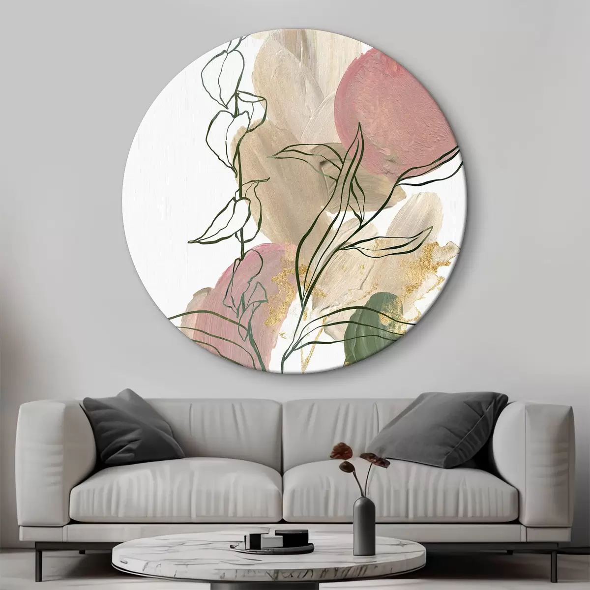Quadri rotondi Composizione autunnale acquerellata di rami lineari, macchie rosa e verdi r35949