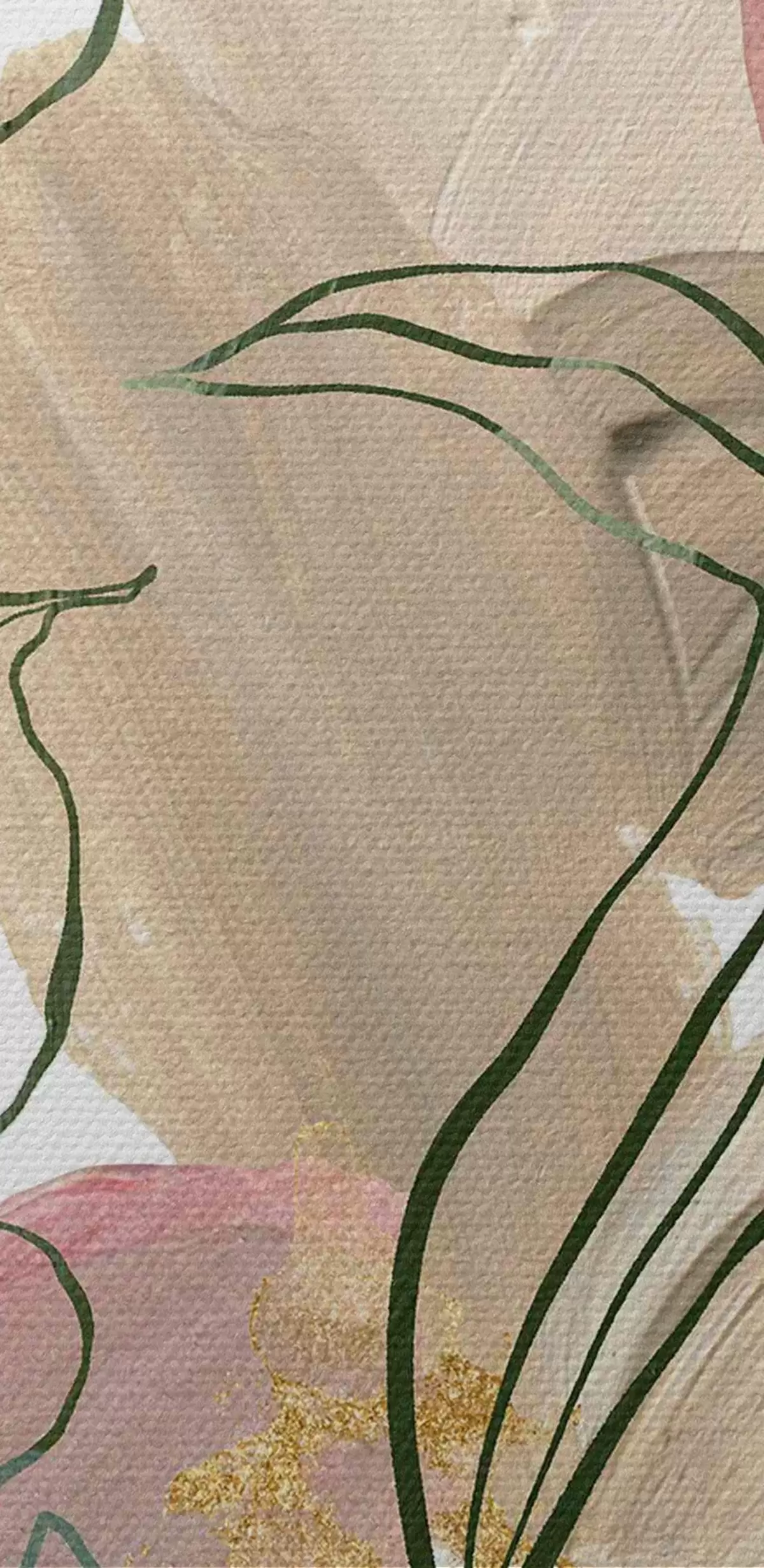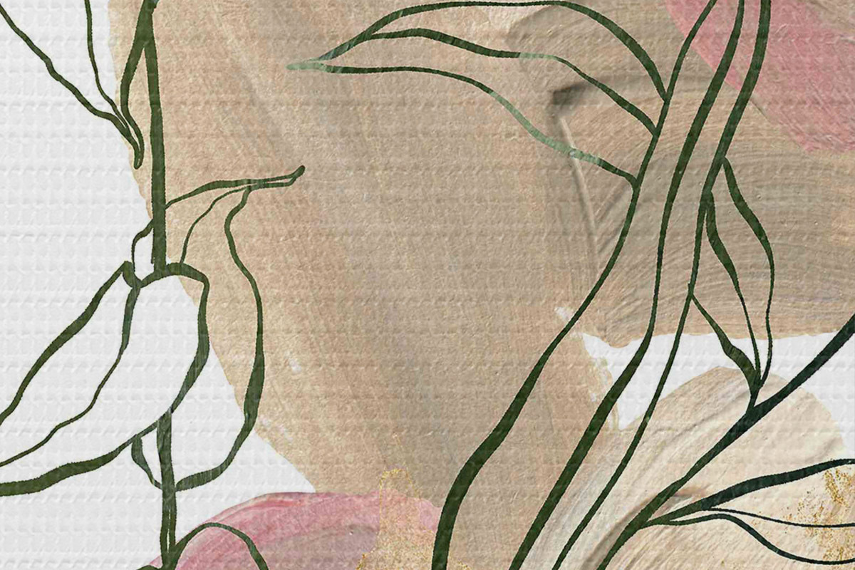 Immagine Composizione autunnale acquerellata di rami lineari, macchie rosa e verdi Nr r35949