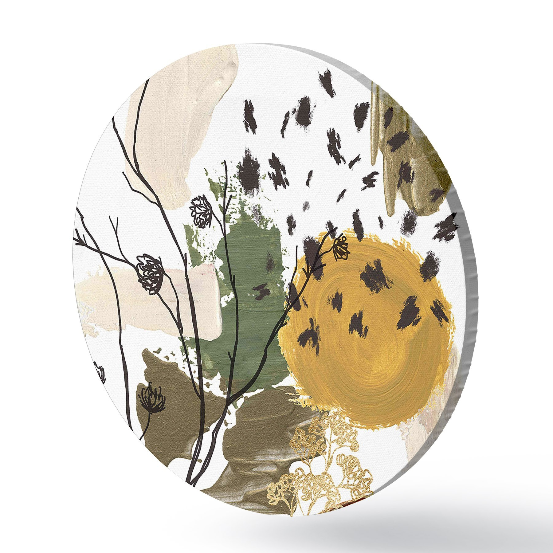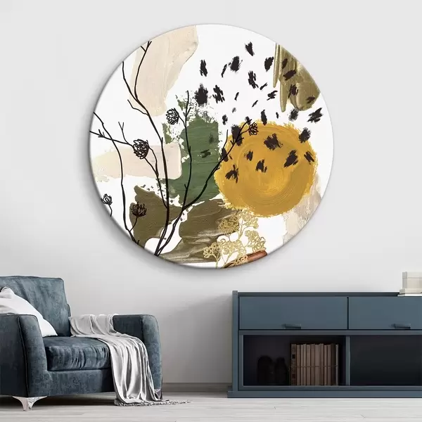 Quadri rotondi Composizione autunnale ad acquerello di rami lineari, macchie marroni, gialle e verdi r35950