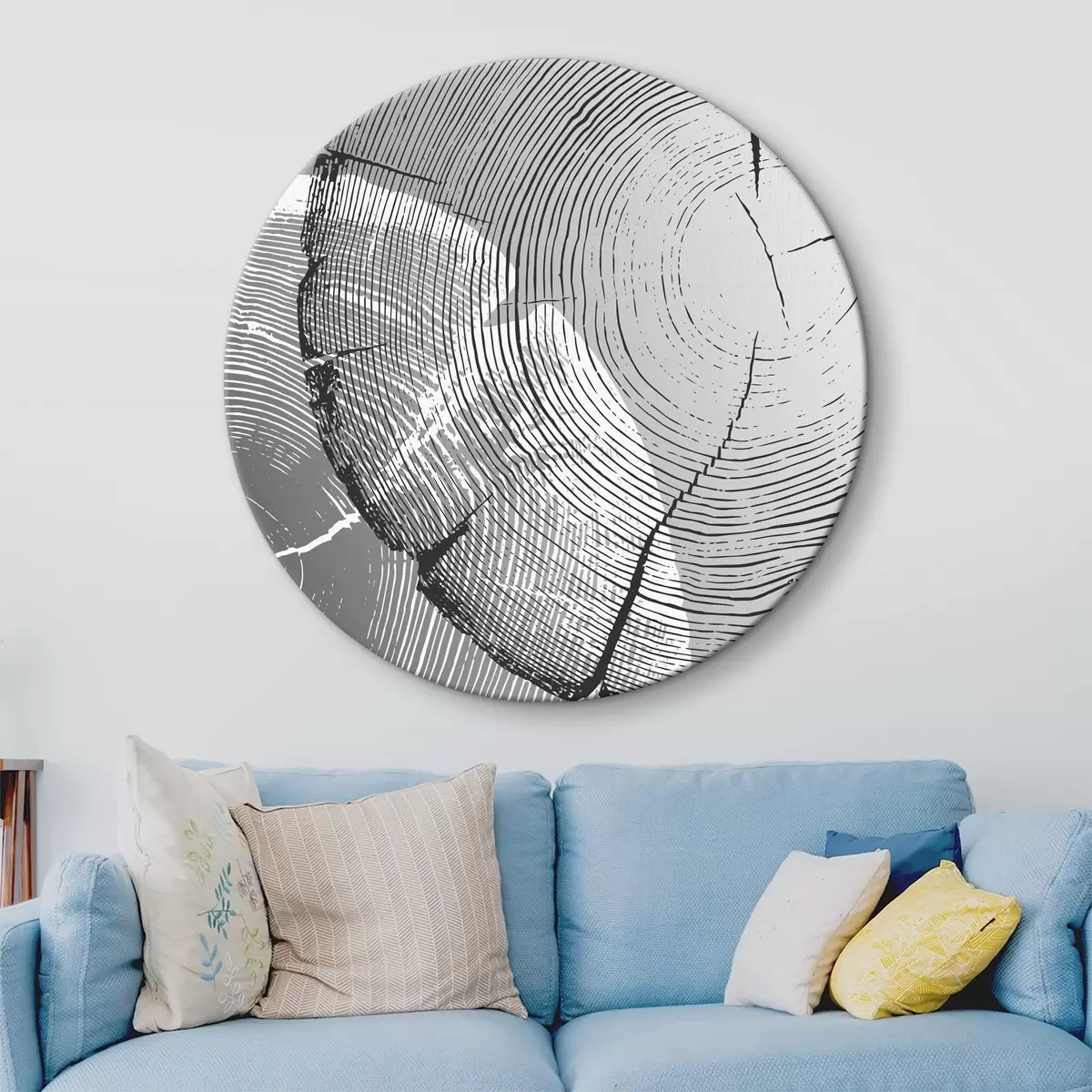 Quadri rotondi Cerchi in bianco e nero tagliati dal legno r35994