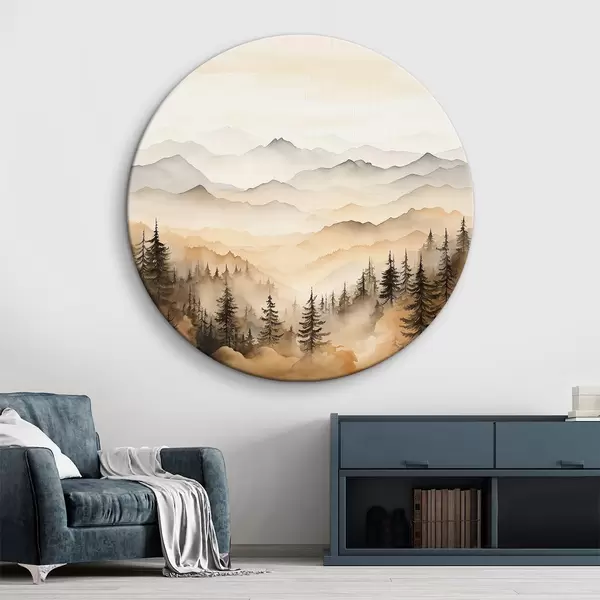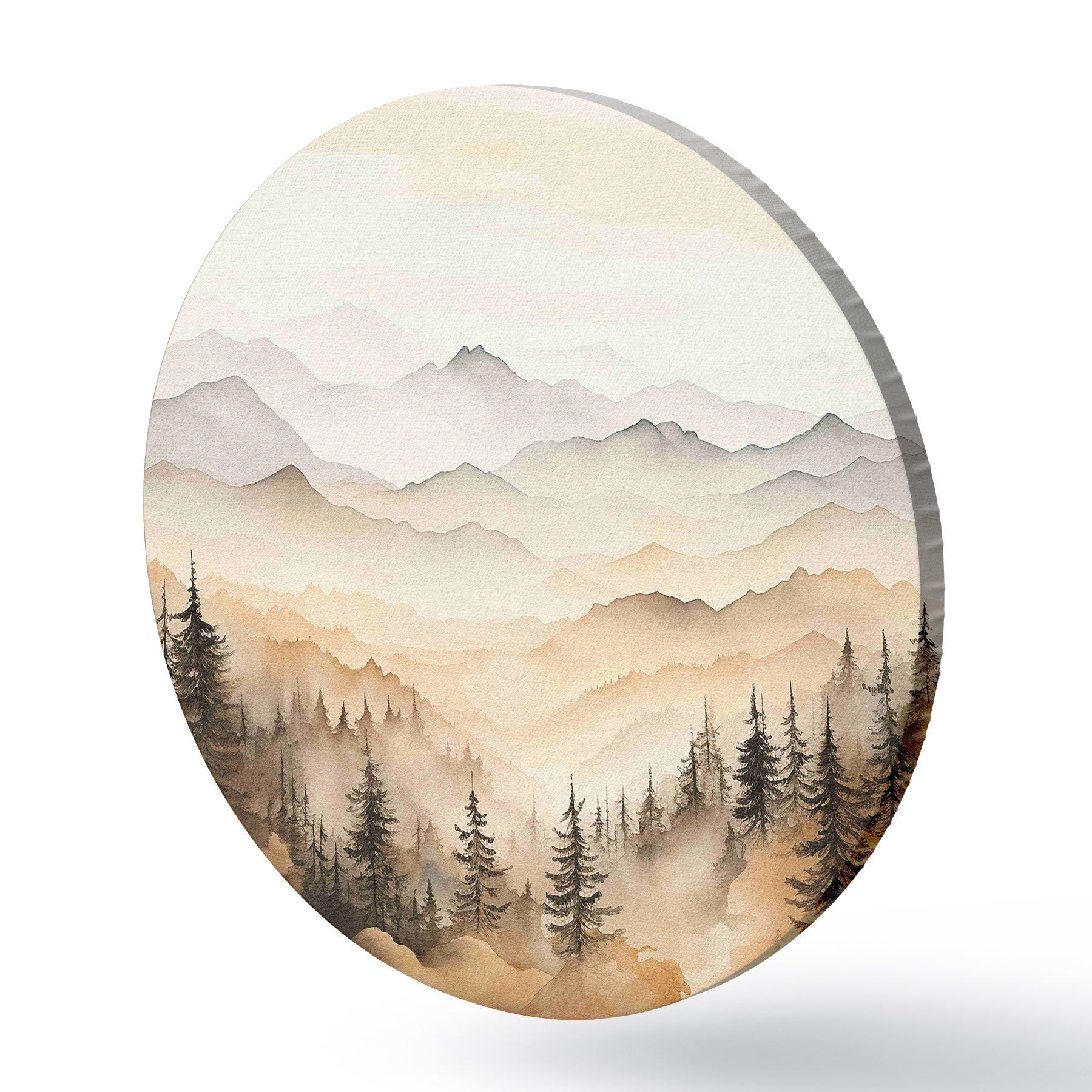 Quadri rotondi Varietà di montagne acquerellate nei toni del beige r36015