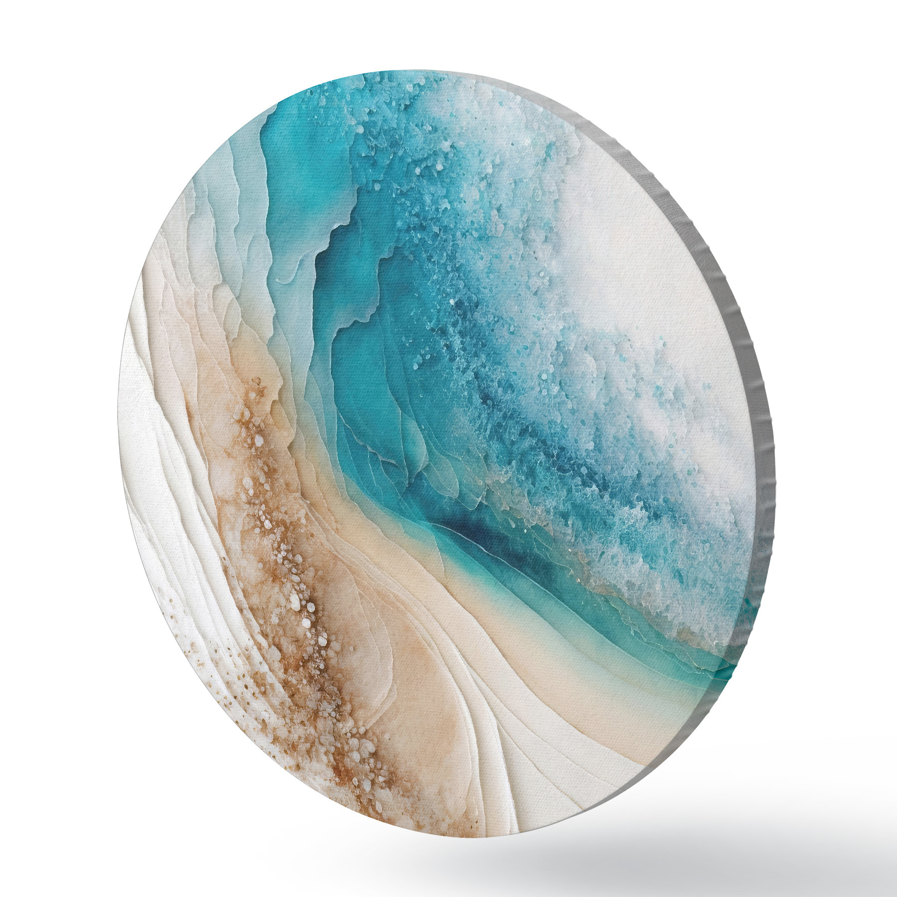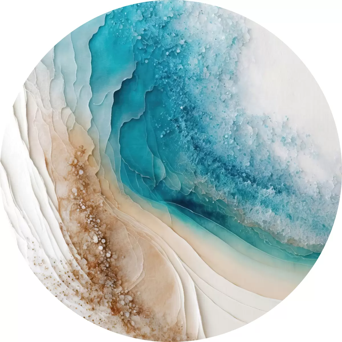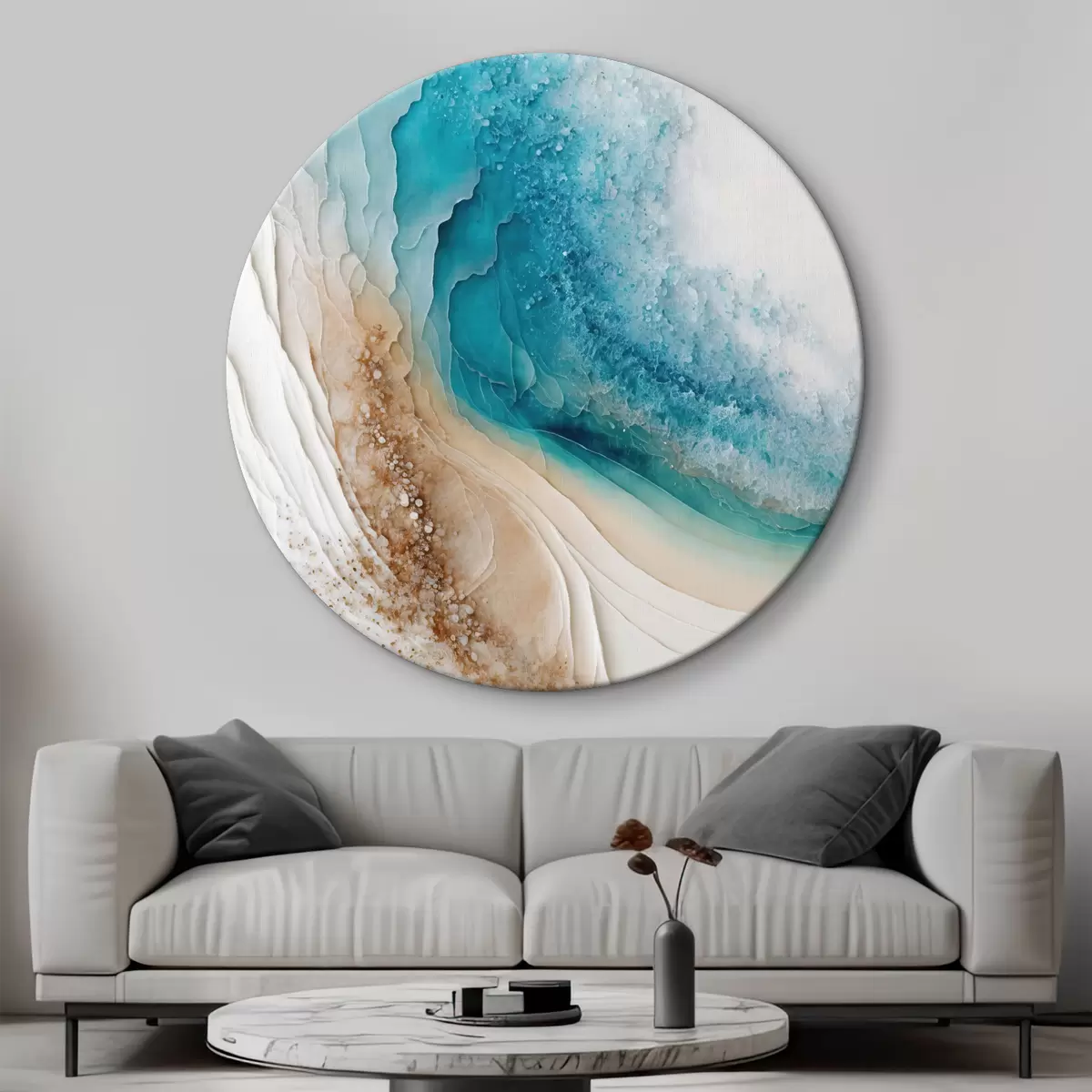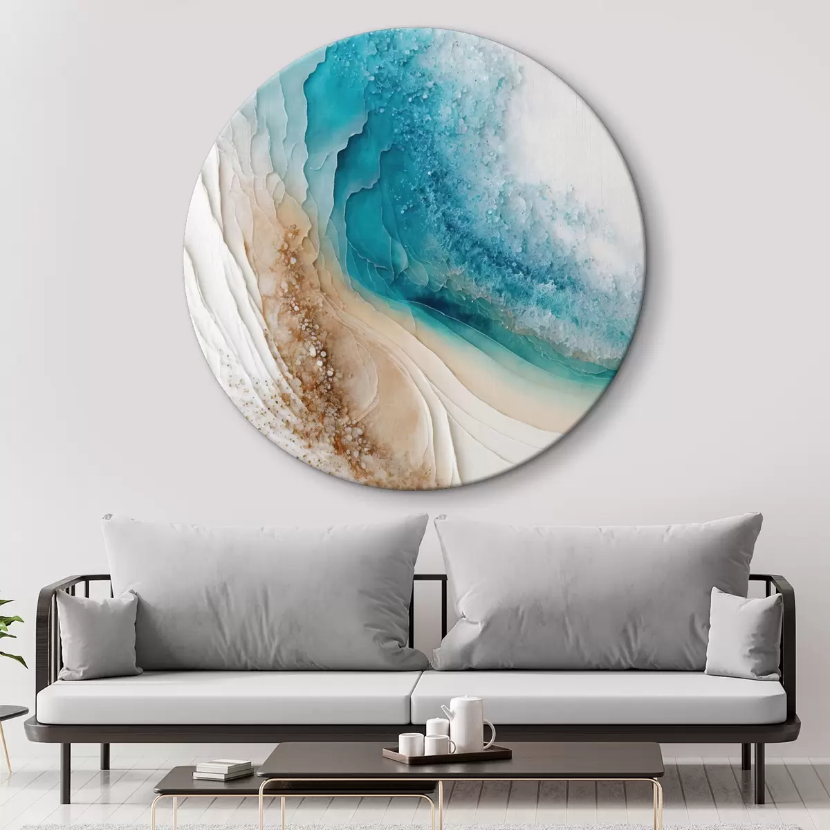 Quadri rotondi Arte fluida turchese e bianca r36029