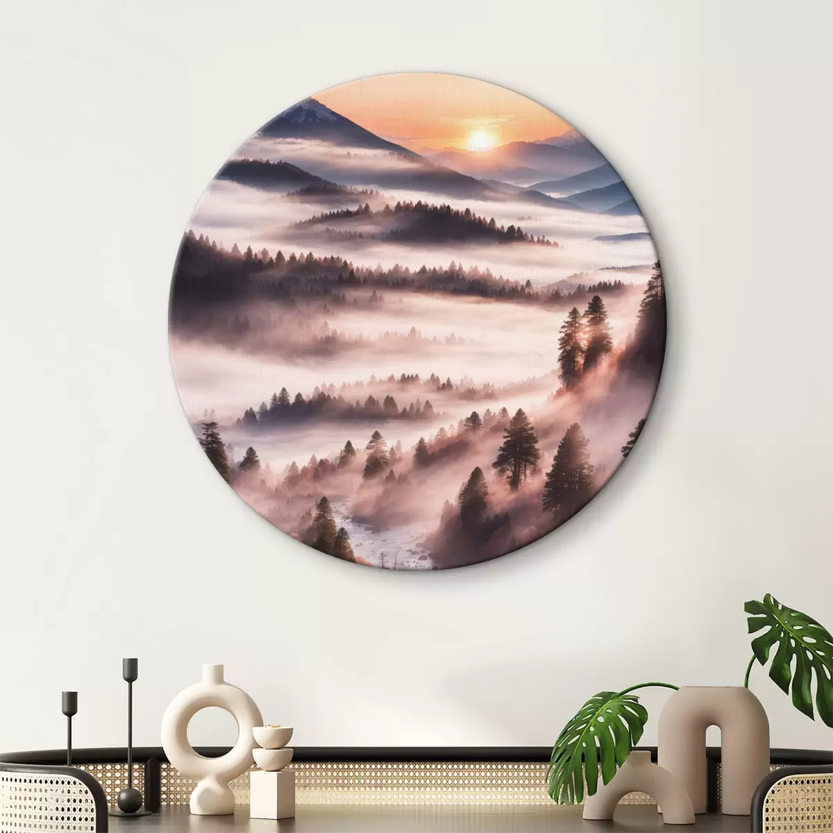Quadri rotondi Vista sulla foresta nebbiosa r36050