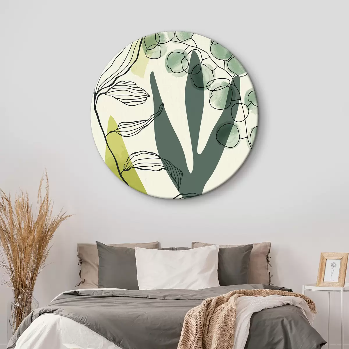 Quadri rotondi Fiori e foglie astratti ad acquerello r36133