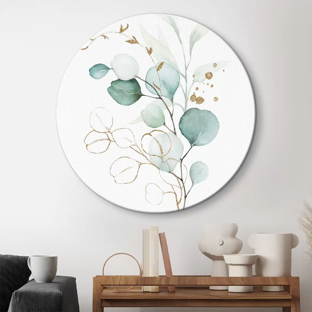 Quadri rotondi Acquerello raffigurante un ramo con foglie blu r36138