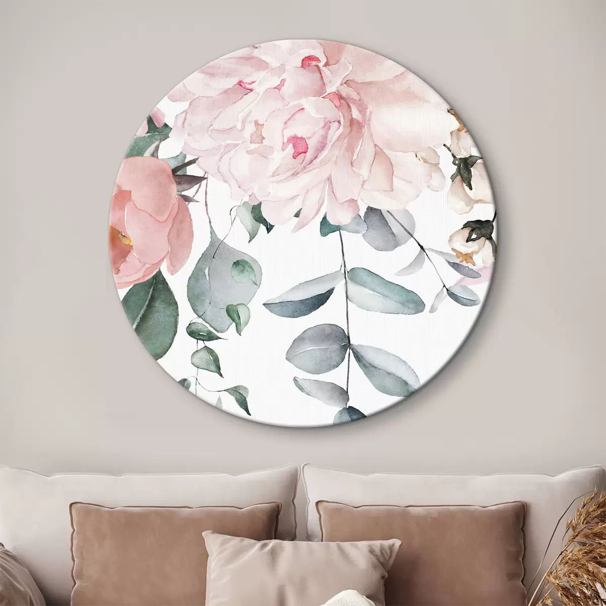 Quadri rotondi Fiore di acarella rosa sullo sfondo di foglie pendenti r36141