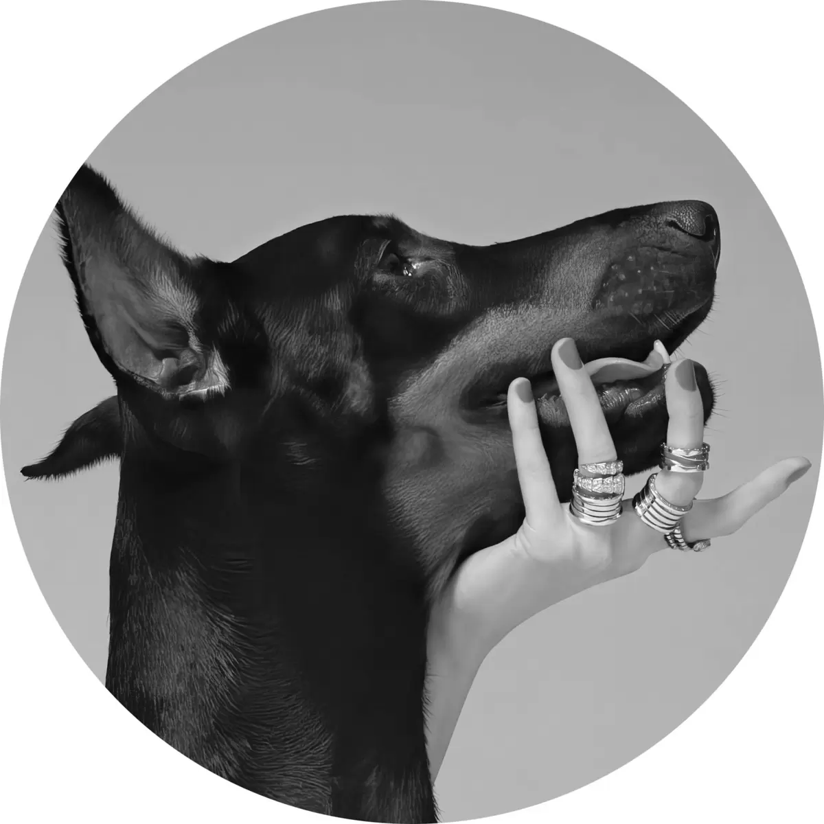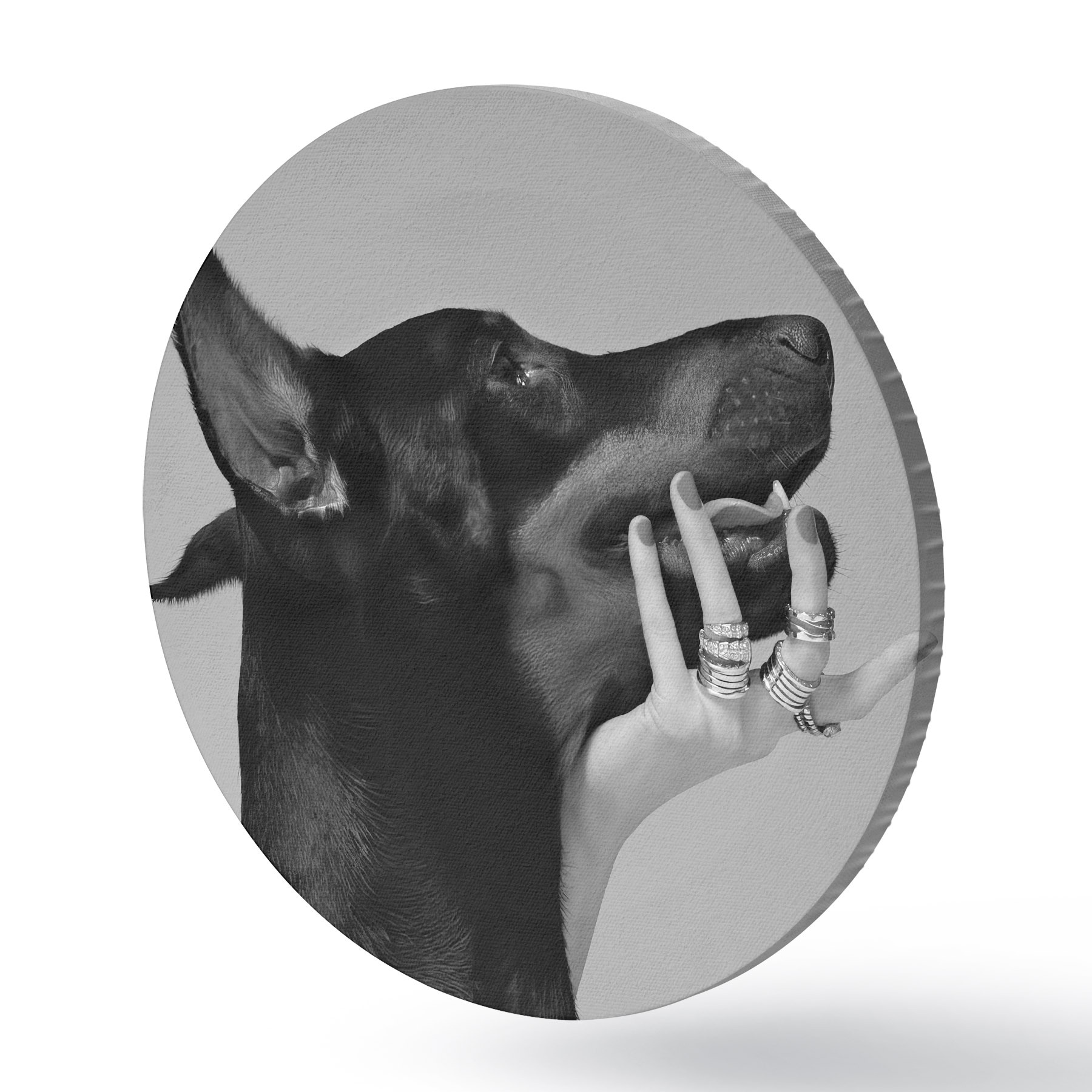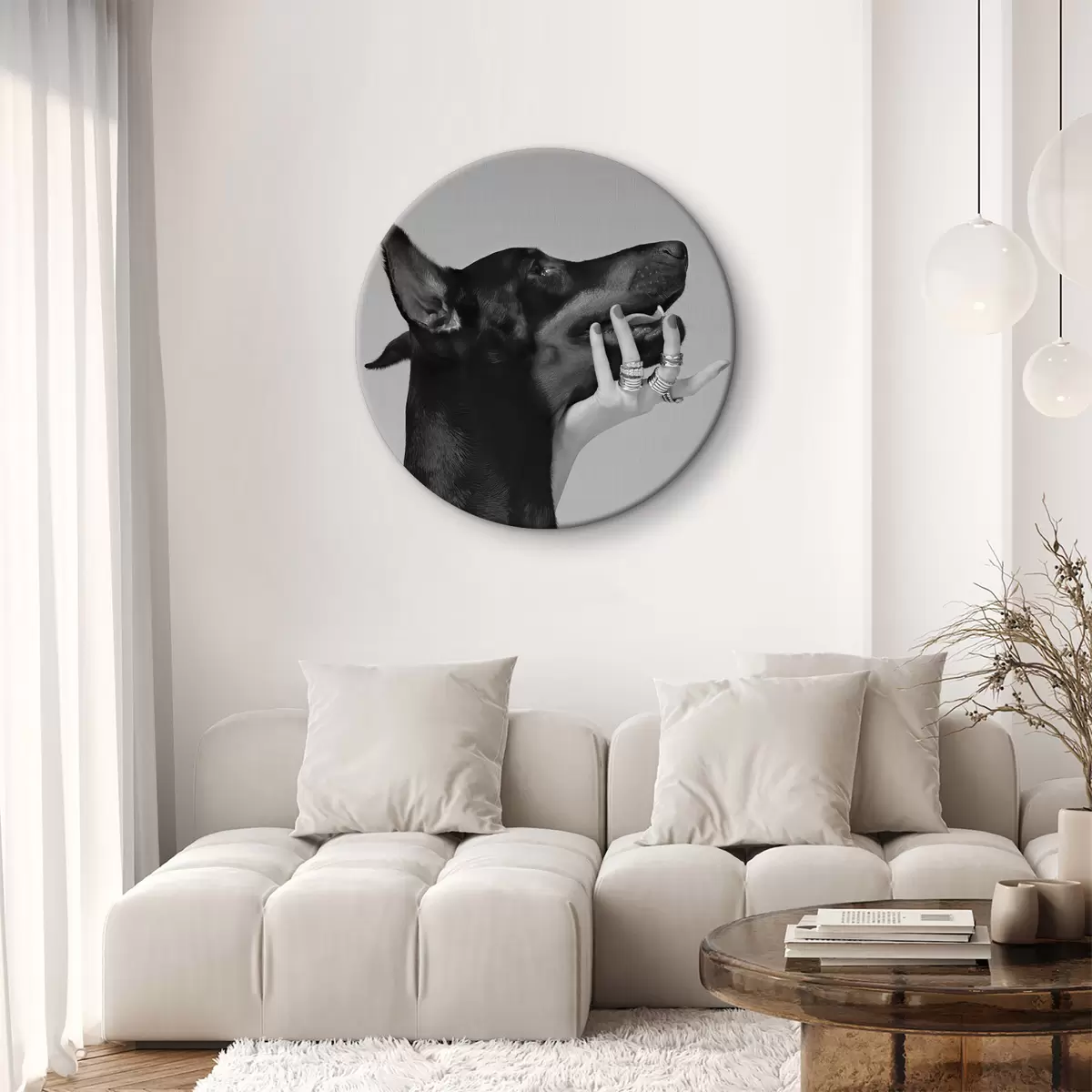 Quadri rotondi Dobermann bianco e nero con naso alto r36178